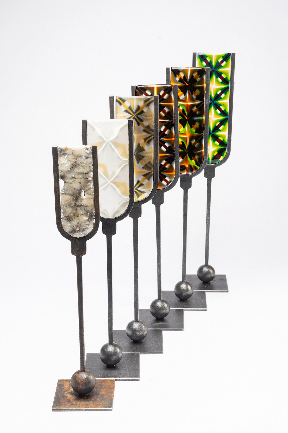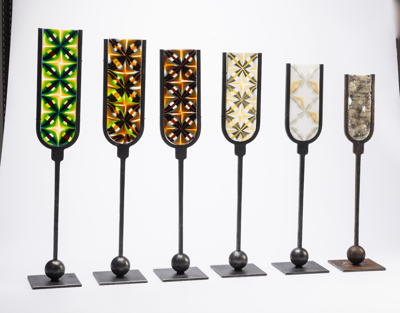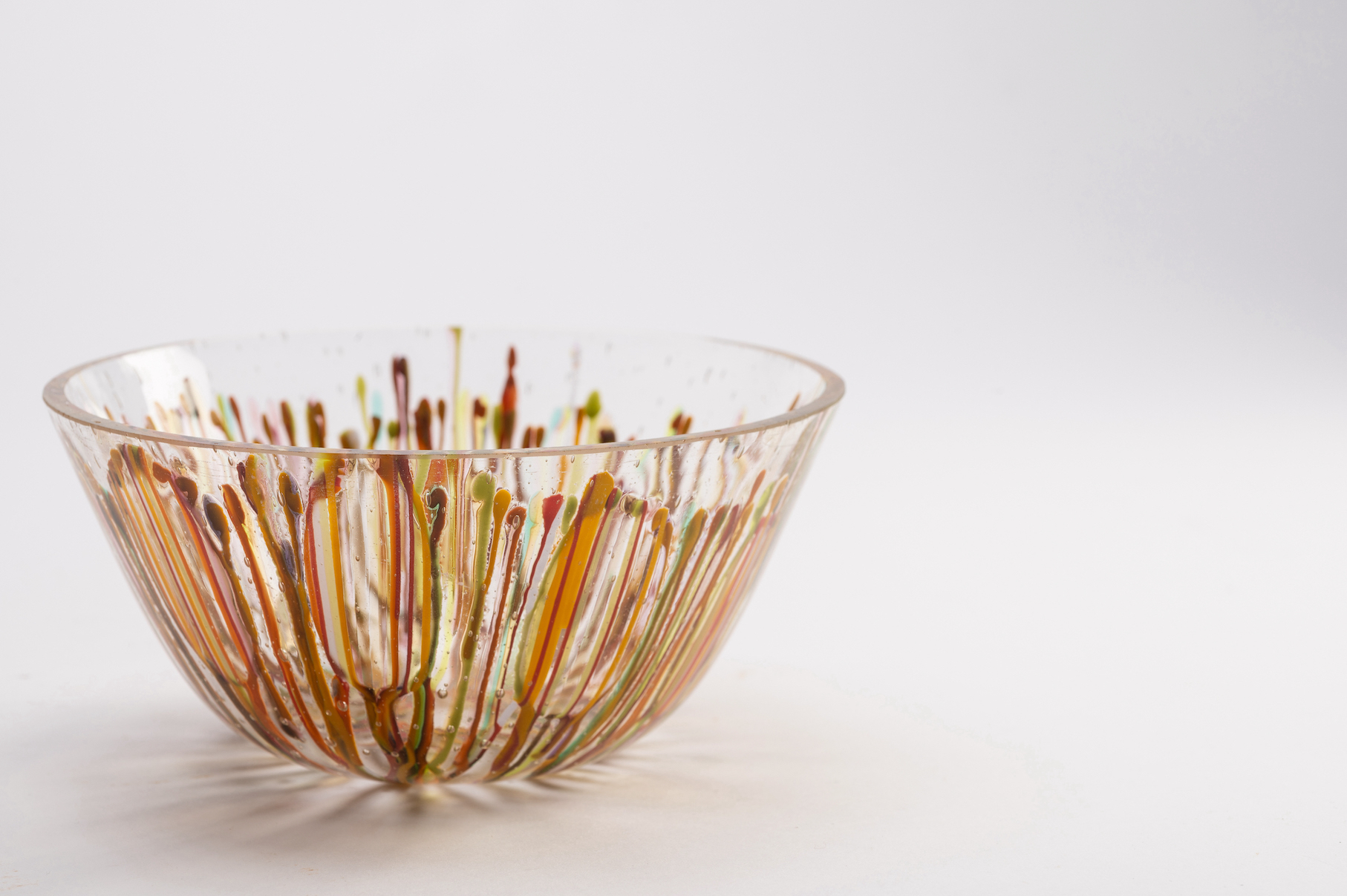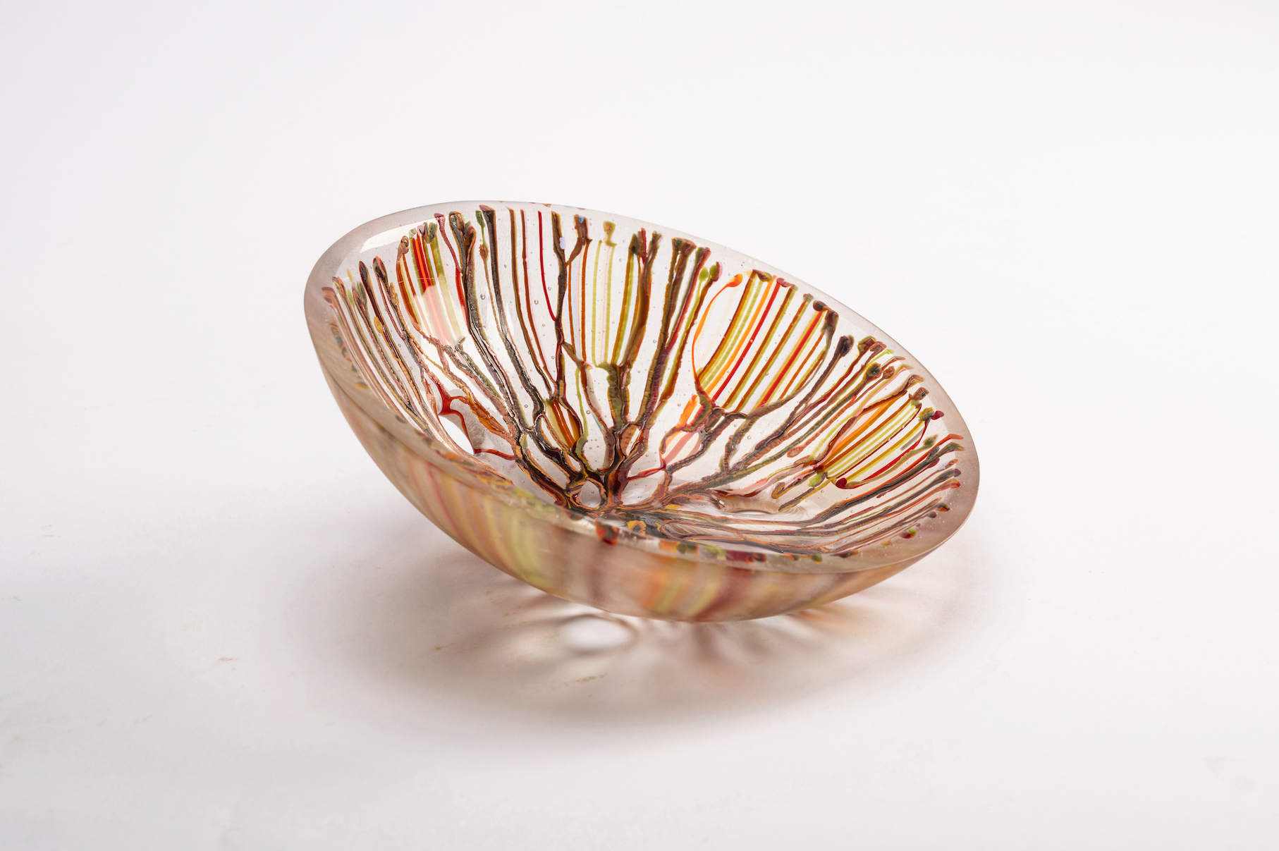 I am interested in resonance patterns, and flow, and find glass an intriguing medium in which to work. I also enjoy using enamels on glass in a painterly fashion.