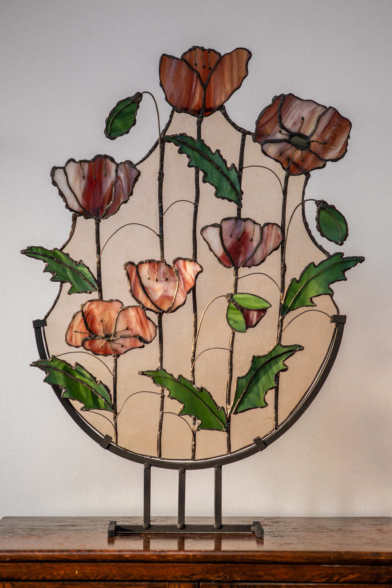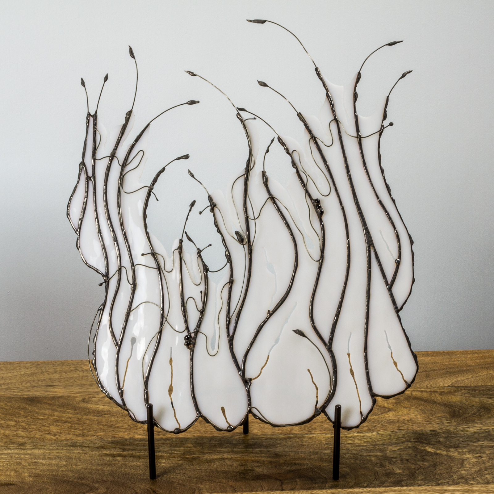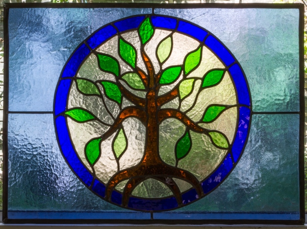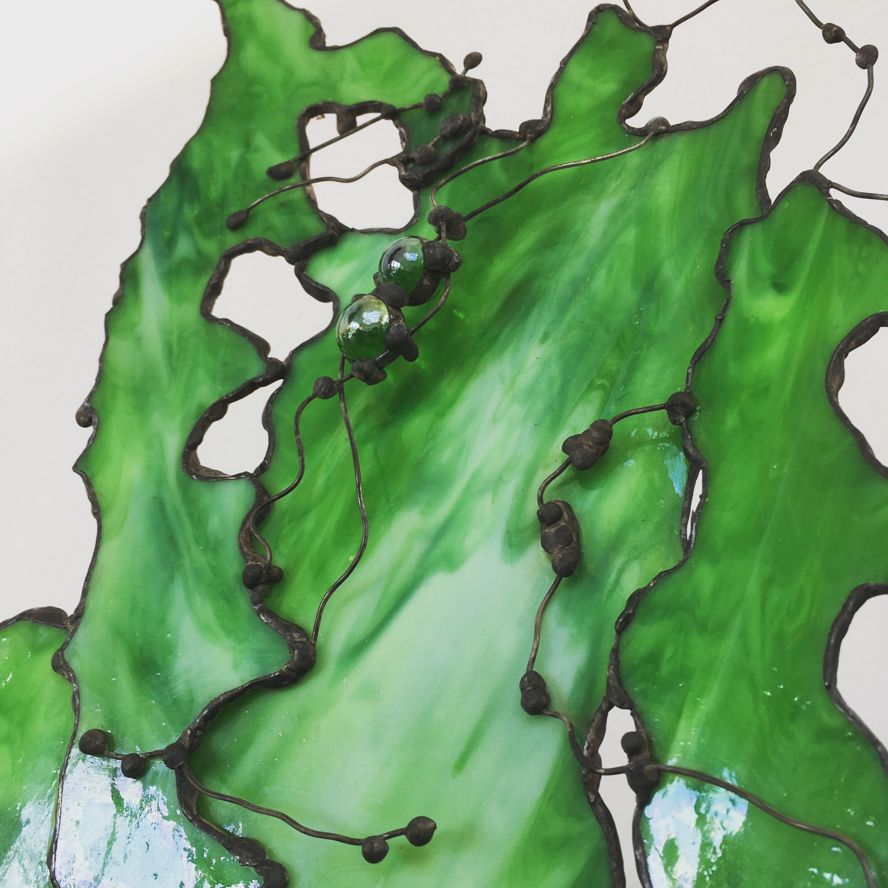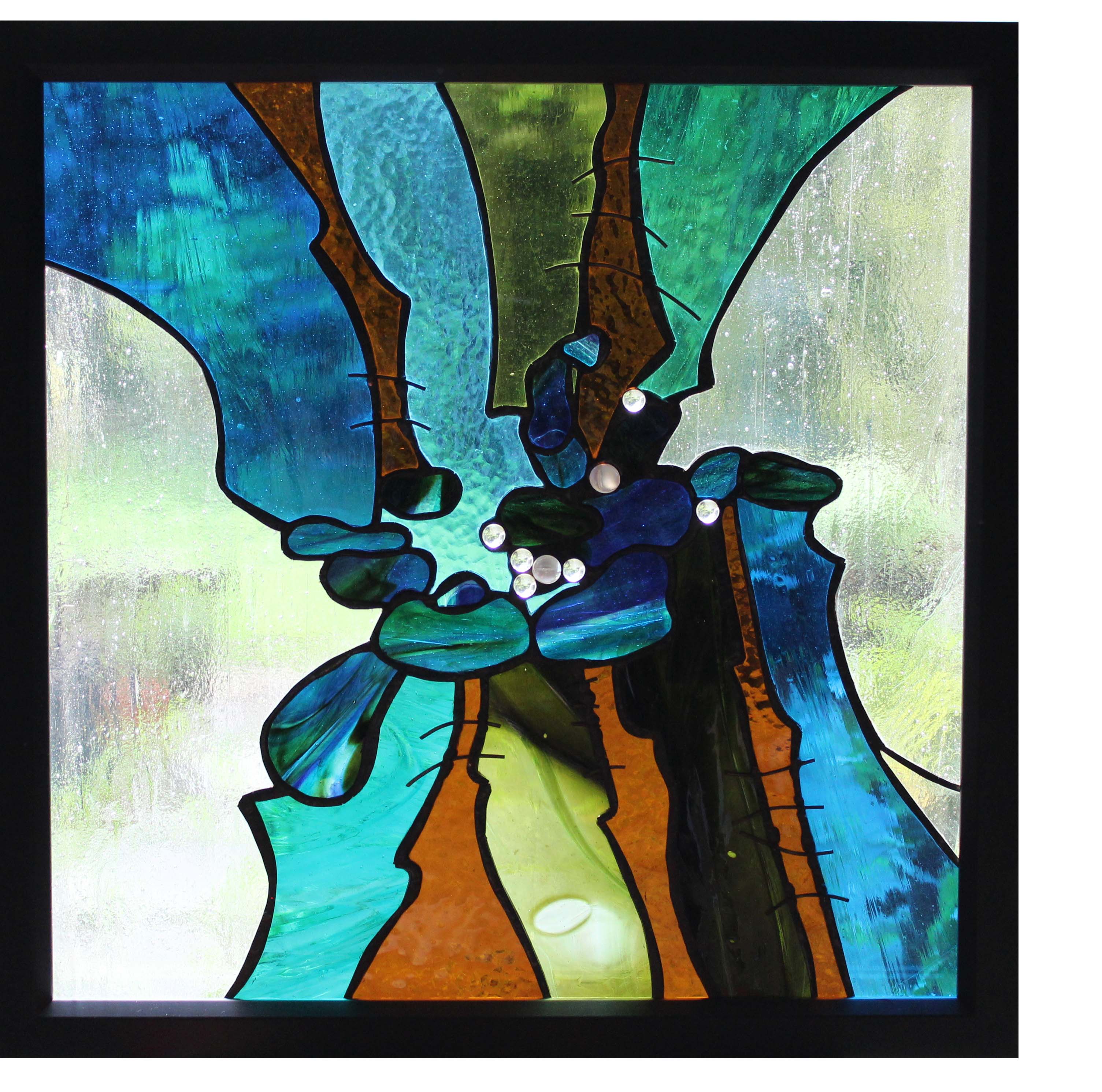 Linda’s ‘Marbellous’ light shade was shown at the prestigious ‘New Glass – Ancient Skill, Contemporary Artform’ exhibition at Blackwell, The Arts and Crafts House. This piece was made specifically to complement the Arts and Crafts surroundings of Blackwell. It uses the copper foil technique and contains over 700 individual pieces, including 1kg of marbles.