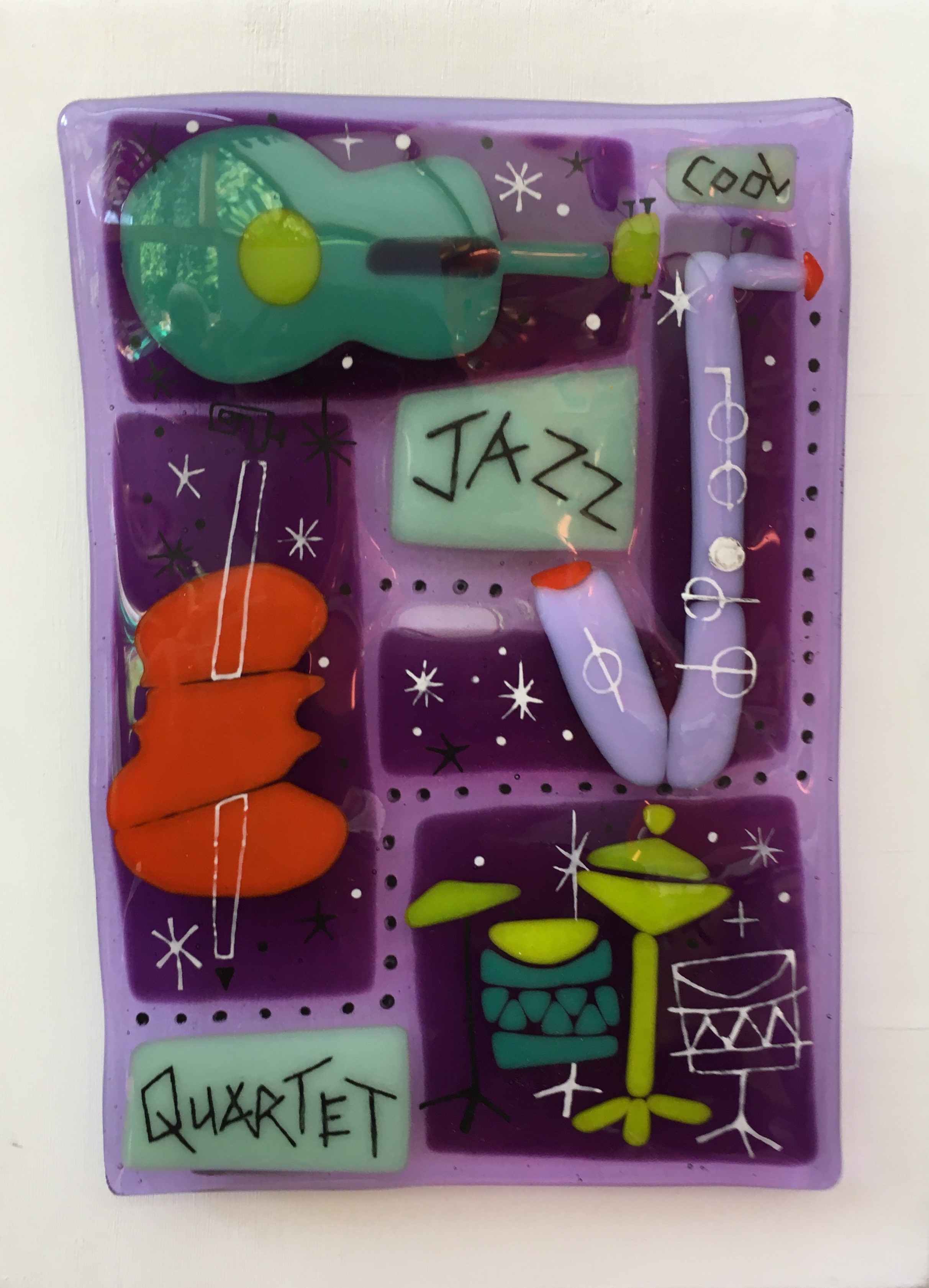 Having trained years ago in stained glass, I now use my glass cutting skills to create fused glass pieces in vibrant colours and quirky subjects to be wall hung or free standing. These can often include driftwood and found objects. A long standing member of Herts Visual Arts Forum - www.hvaf.org.uk