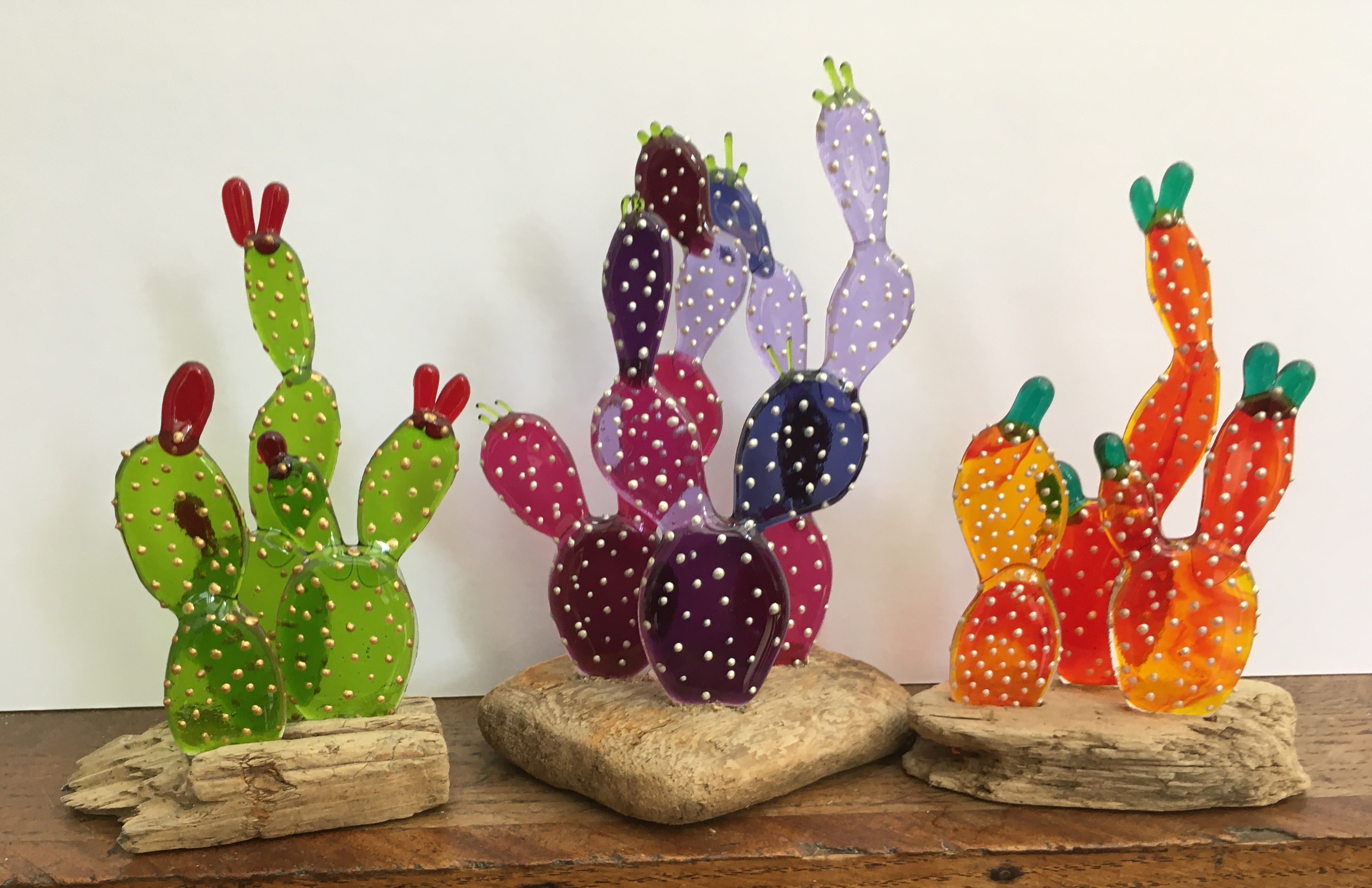 3 cacti on driftwood