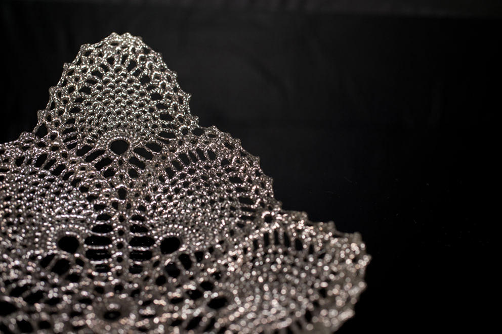 I am currently researching & testing further textile techniques such as weaving, traditional Aran/Celtic designs & Shetland Lacework Shawls. I am also investigating a wider range of glass materials, such as rope to create a new range of glass vessels & lighting.