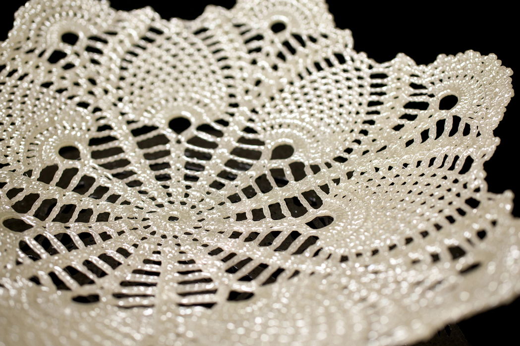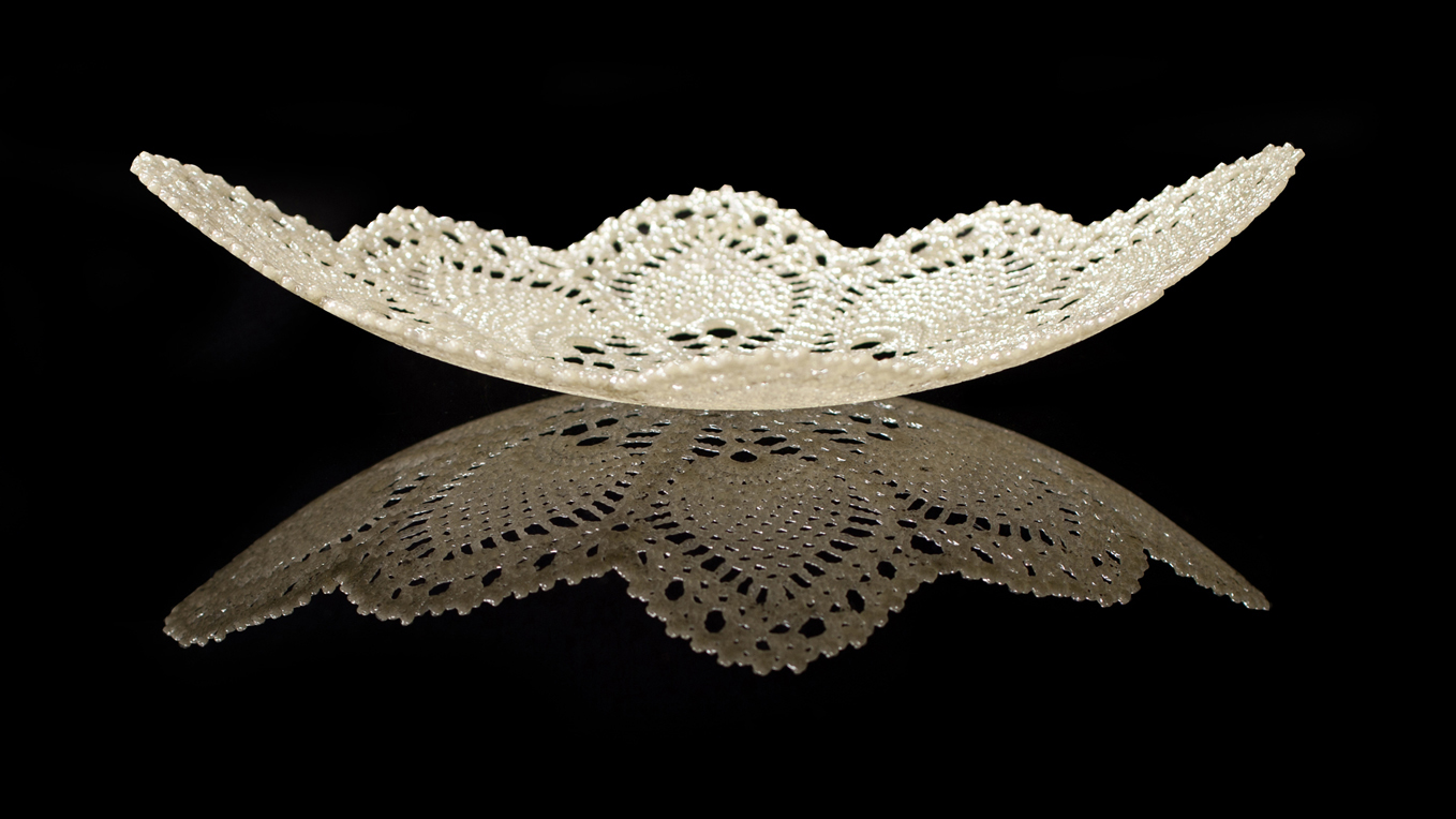 I am currently researching & testing further textile techniques such as weaving, traditional Aran/Celtic designs & Shetland Lacework Shawls. I am also investigating a wider range of glass materials, such as rope to create a new range of glass vessels & lighting.