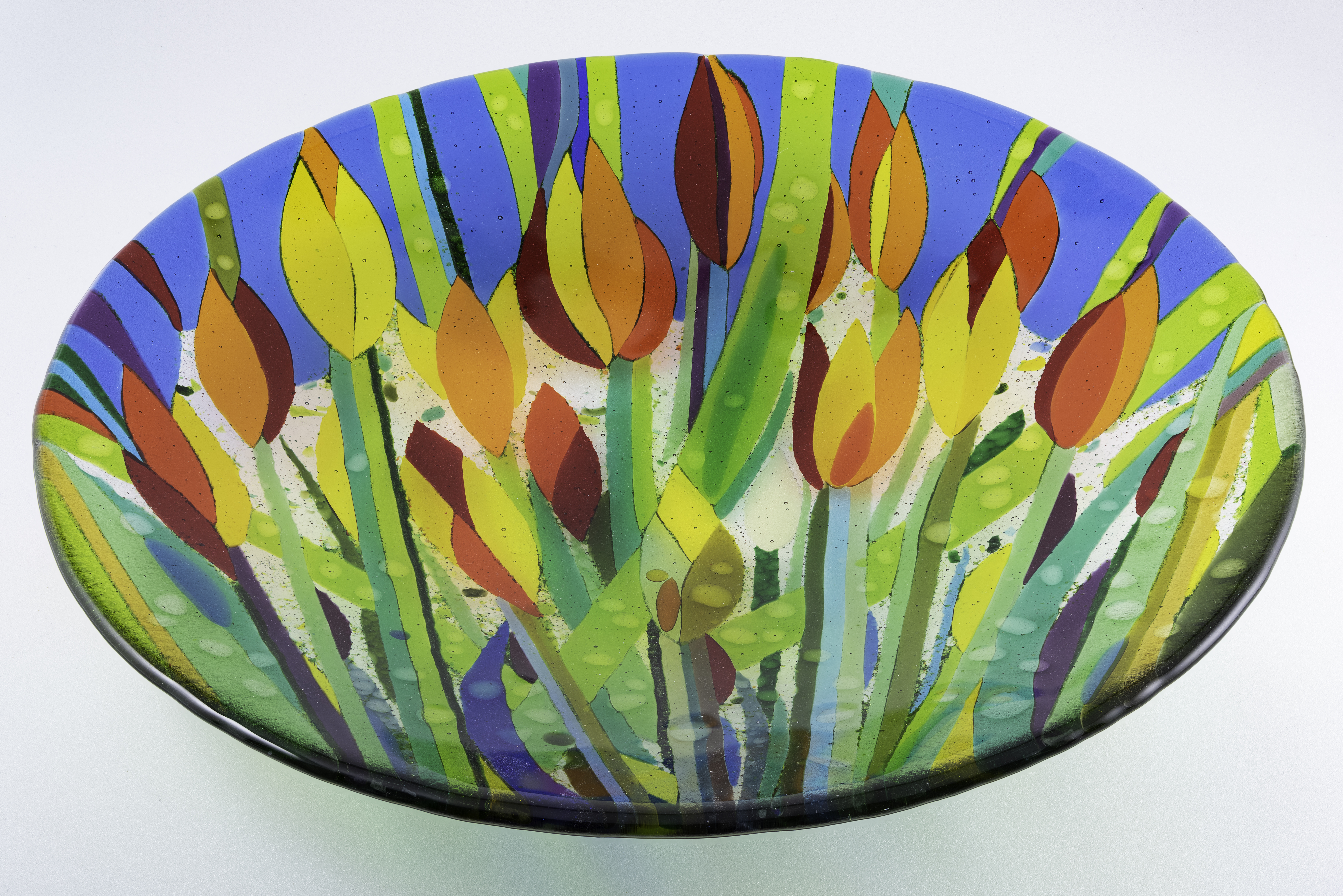 Spring flower dish, fused glass 370mm , Chris Jeffree