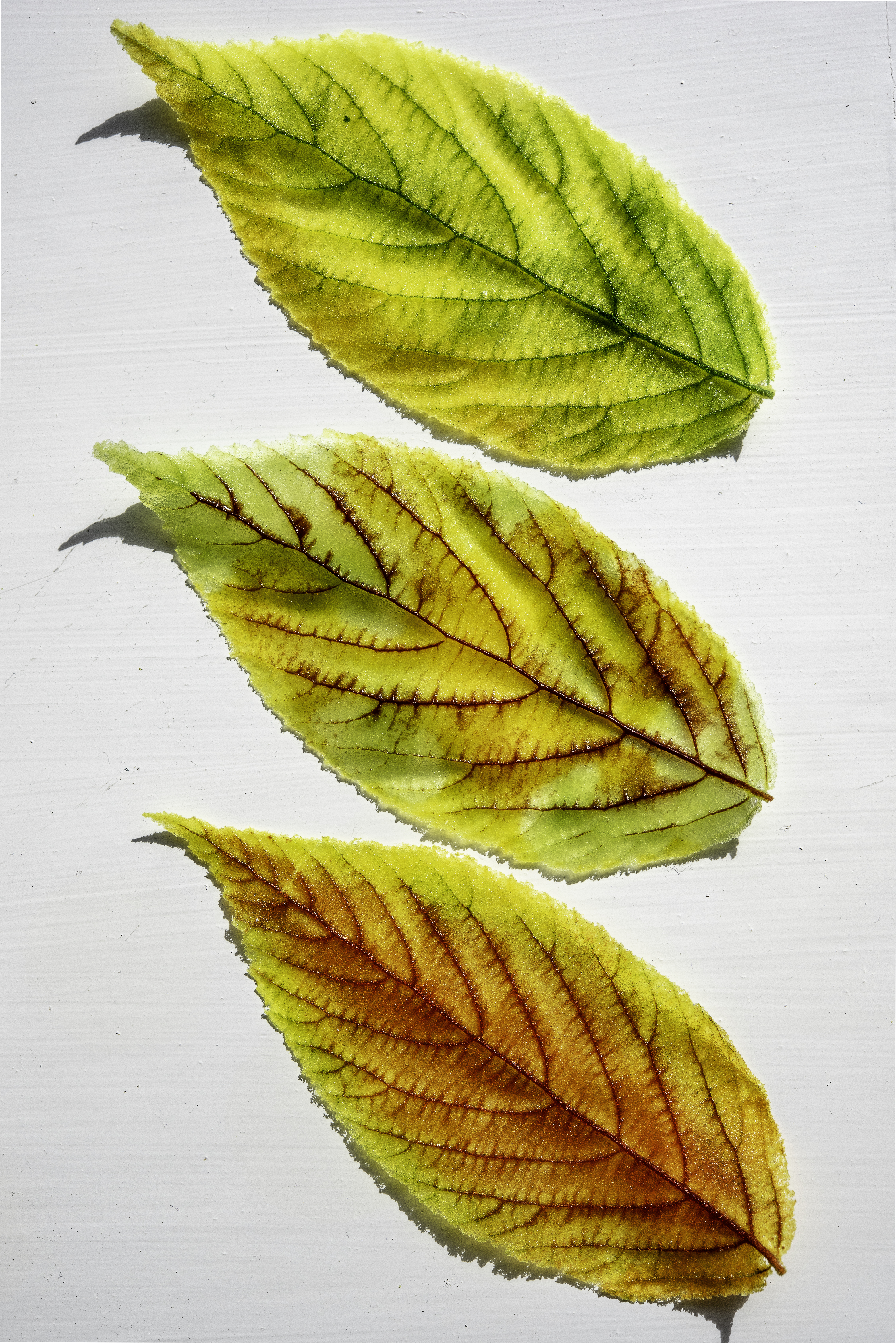Wafer-thin Viburnum leaves, pate de verre , Chris Jeffree