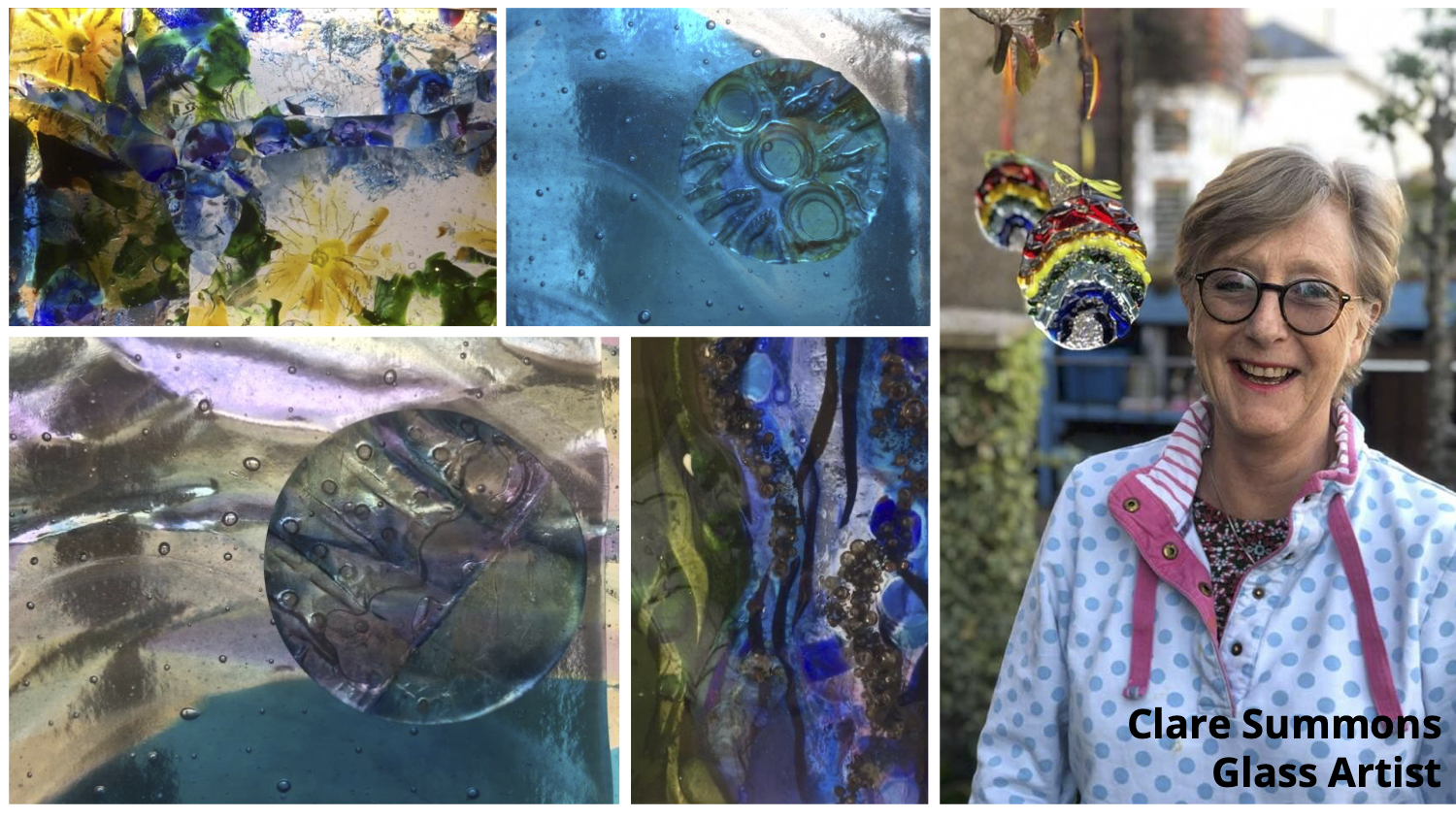 My work uses a range of techniques, which bring out the texture and the colour of the glass. I am drawn to the nature of the heat and all that changes within the kiln. The use of plaster and how this can add to the surface and depth of the piece intrigues my creative thoughts. The collaging of glass and the layering of colour , bringing out the vibrancy and energy of the piece.