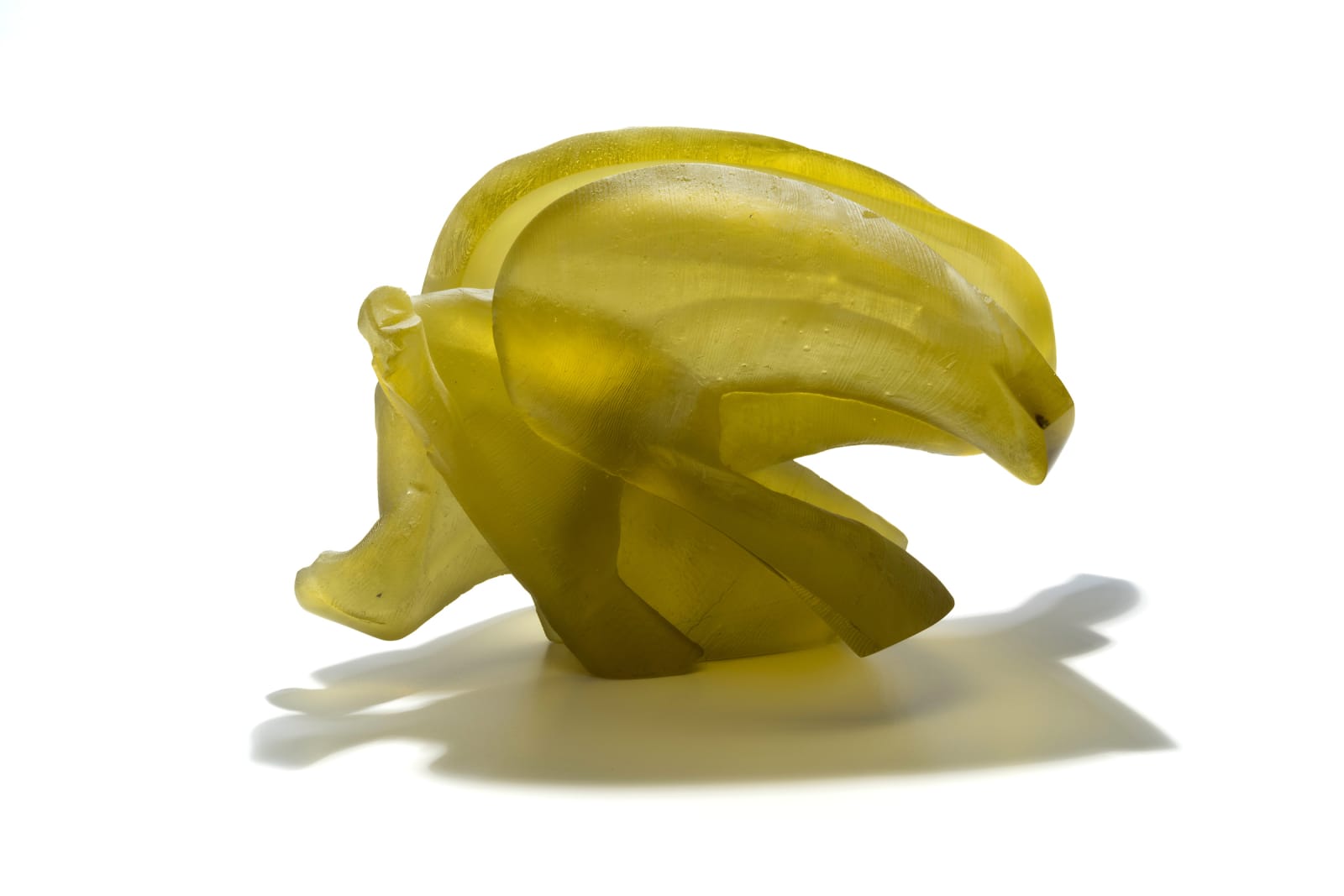 My current project involves the recording of a dancer’s movements in a Motion Capture Studio. These recordings are then converted into a printable file and a model of the movement pathways is created. A silicone mold of the model is made and wax is poured into the mold to create a wax positive. The lost wax casting technique is used to transform these models into kiln-cast glass sculptures of the dancers movement pathways.