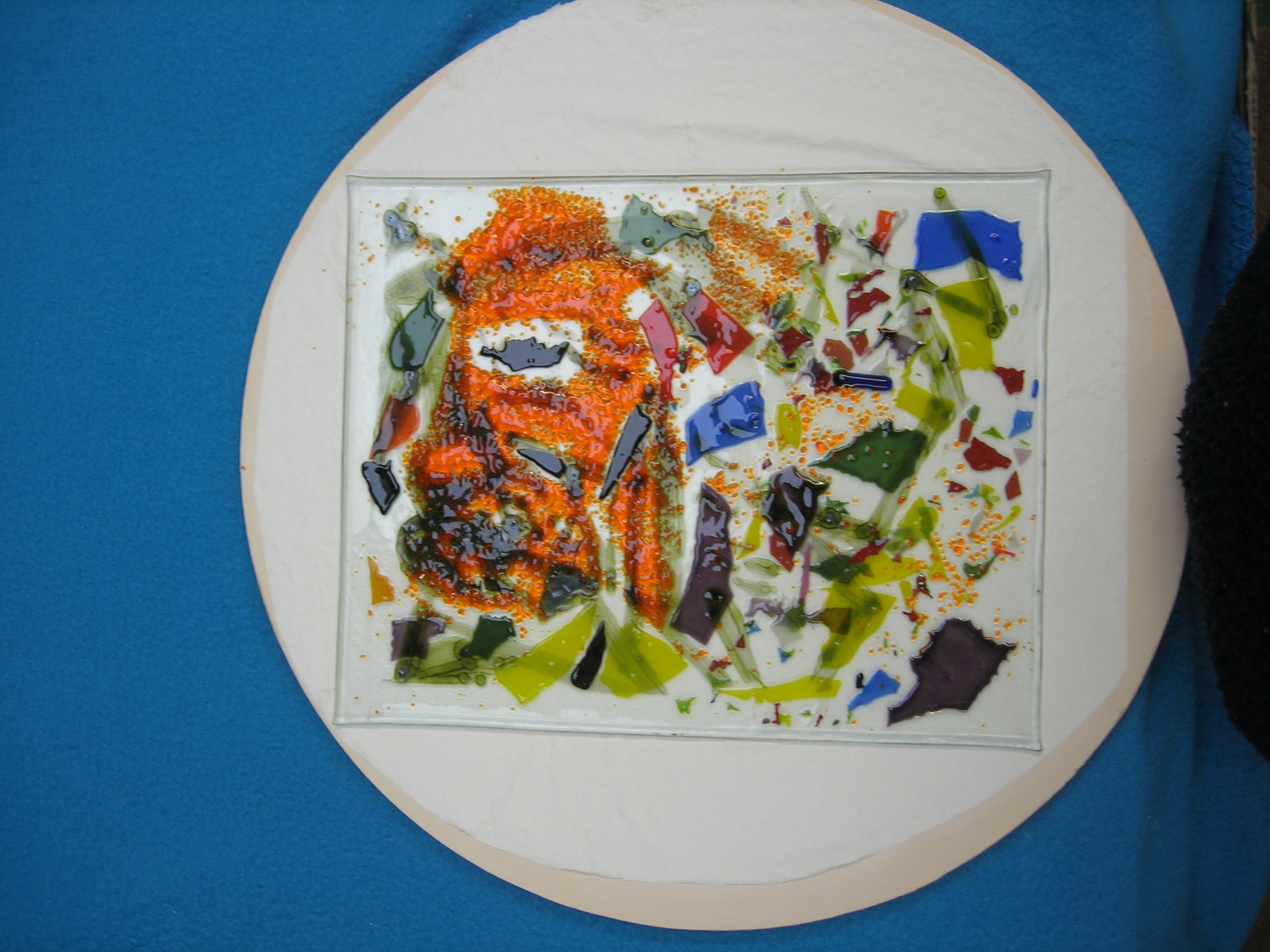 I studied Architecture and Glass at Central St Martins because I thought I needed to get some experience with commissions. Whilst there I created nest sculptures employing found objects and glass. At present I am working on a mural on the theme of athletes; my aim is to bring my gestural paintings into my glass practice.My aim would be to do a hospital or church piece but I am content in doing diverse work meantime such as school commissions and eccentric machines involving glass