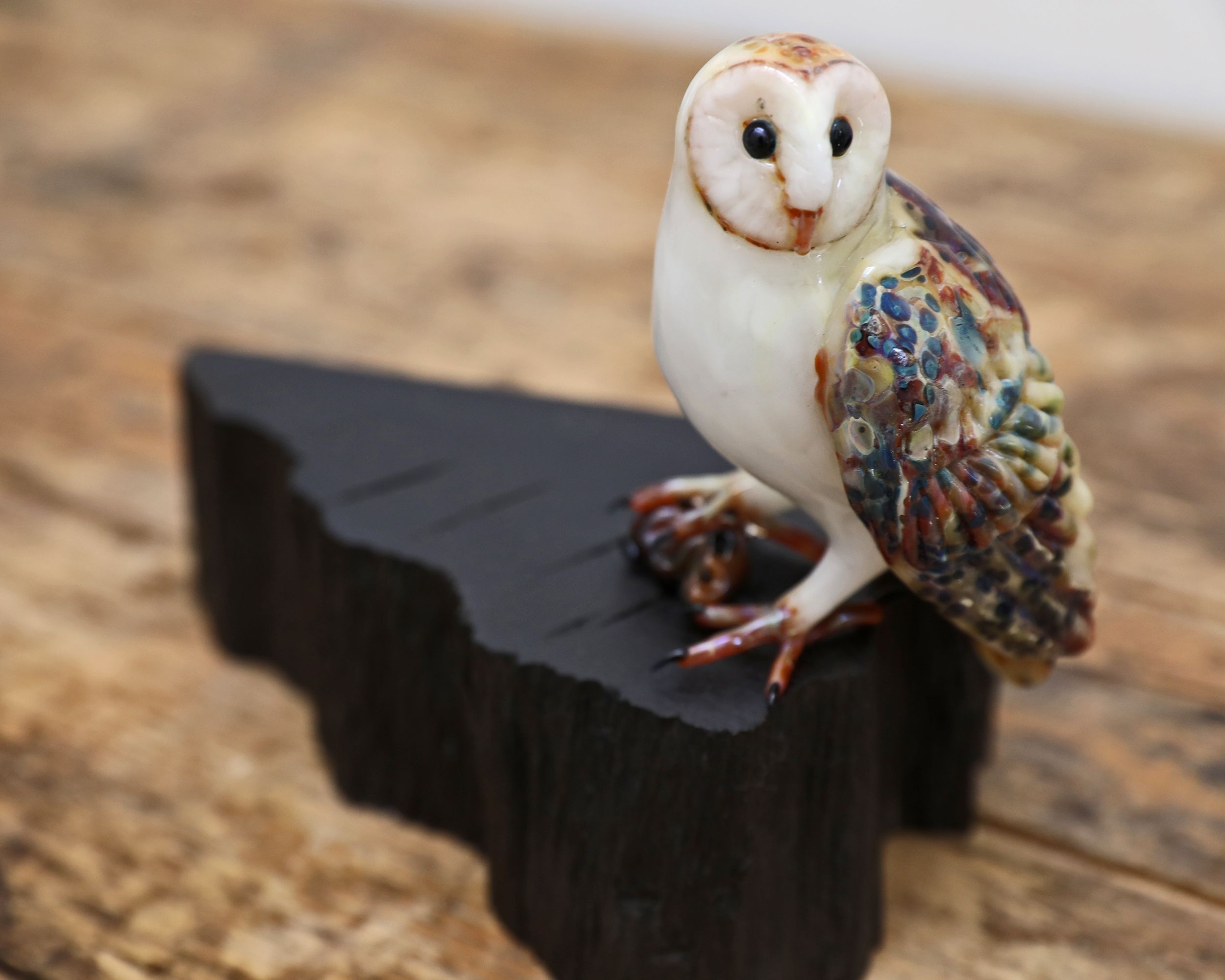 Elizabeth creates highly detailed borosilicate glass sculptures of animals particularly bird insect and marine life. Each piece made made entirely by hand using coloured borosilicate glass rods which are melted in a high oxygen and propane flame. each piece is annealed in an electrically controlled kiln for lasting strength and durability.