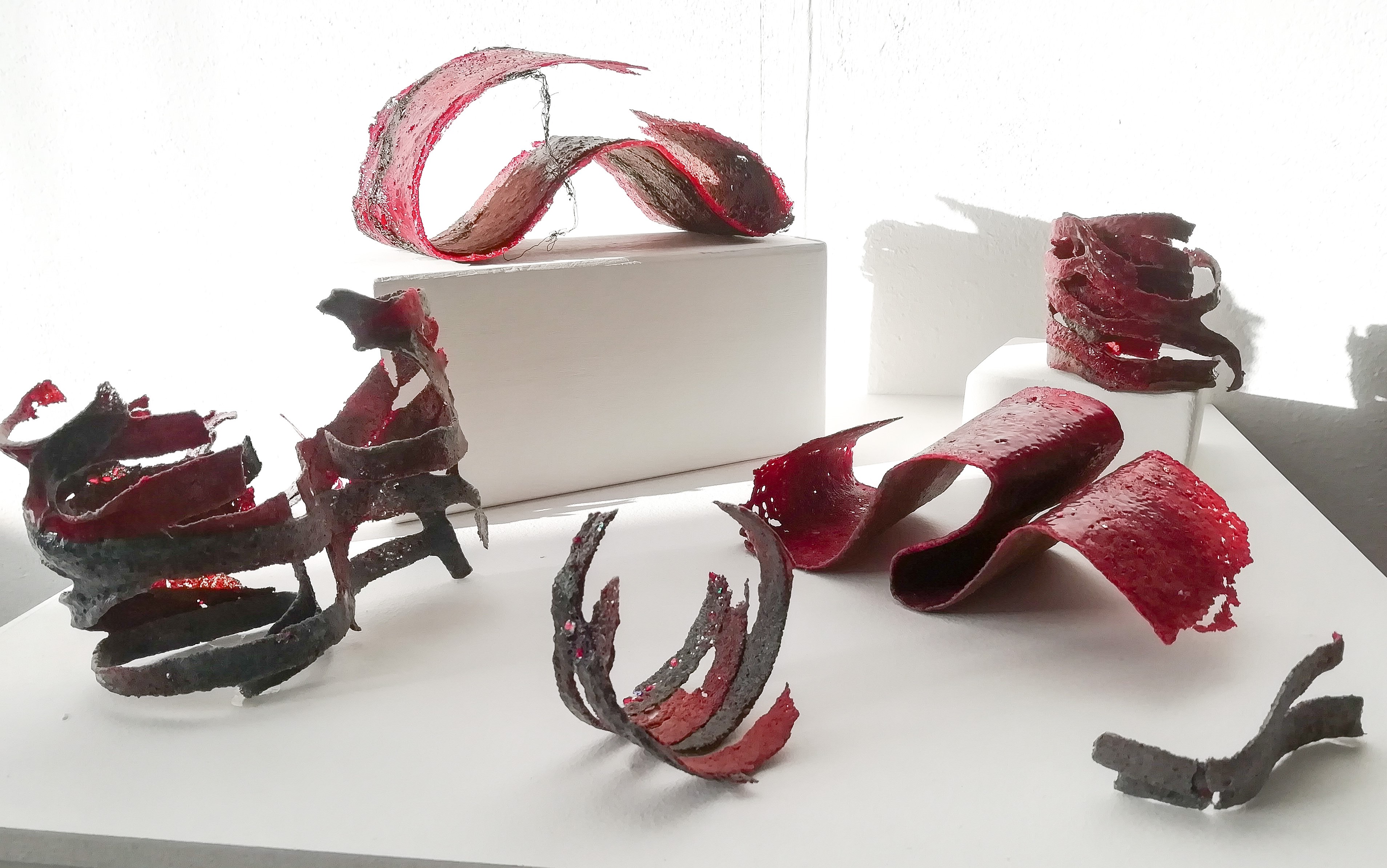 My current work represents my emotions and mental health experience, through colour, texture, and form. The work highlights different sides of my personality using glass colours to describe aspects of my mental health and emotions. The glass texture signifies uncomfortable feelings through rough, matt qualities in contrast to more positive feelings that are glossy and smooth. They are formed into small, delicate spirals and curves. In the darker pieces, the spirals represent a downward spiral; on the lighter side the path leading from outer consciousness to the inner soul.