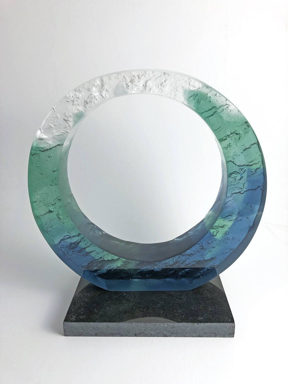 My work is influenced by the formation of the natural landscape by geological processes and changes from human interaction. Glaciation and coastal erosion are of particular interest and I use the qualities of the glass to represent features in the landscape and maritime environment.