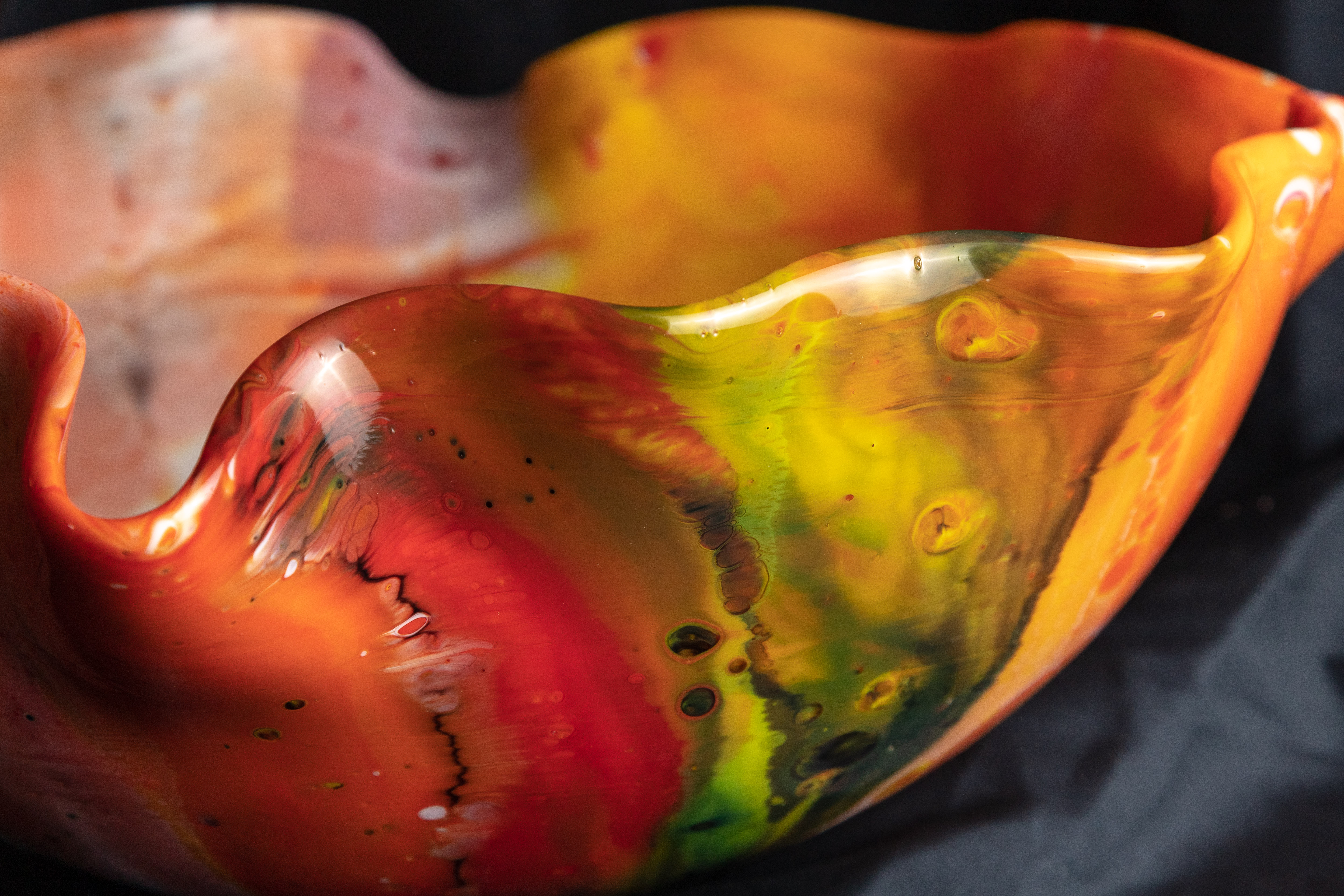 Silvana developed a passion for glass over the years, progressing from lead-lighting to fusing and casting. She uses a range of techniques that she has learnt and developed, often making use of the movement arising from the fluidity of the glass when it is hot.
