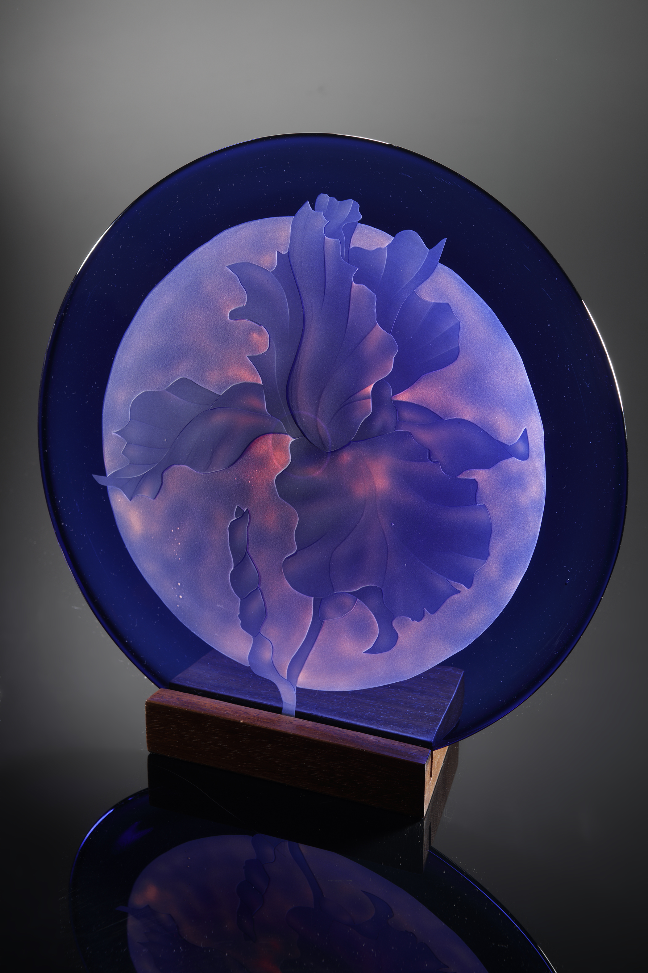 Iris disc - sandcarved into double-cased disc, blue over ruby , Simon Bruntnell