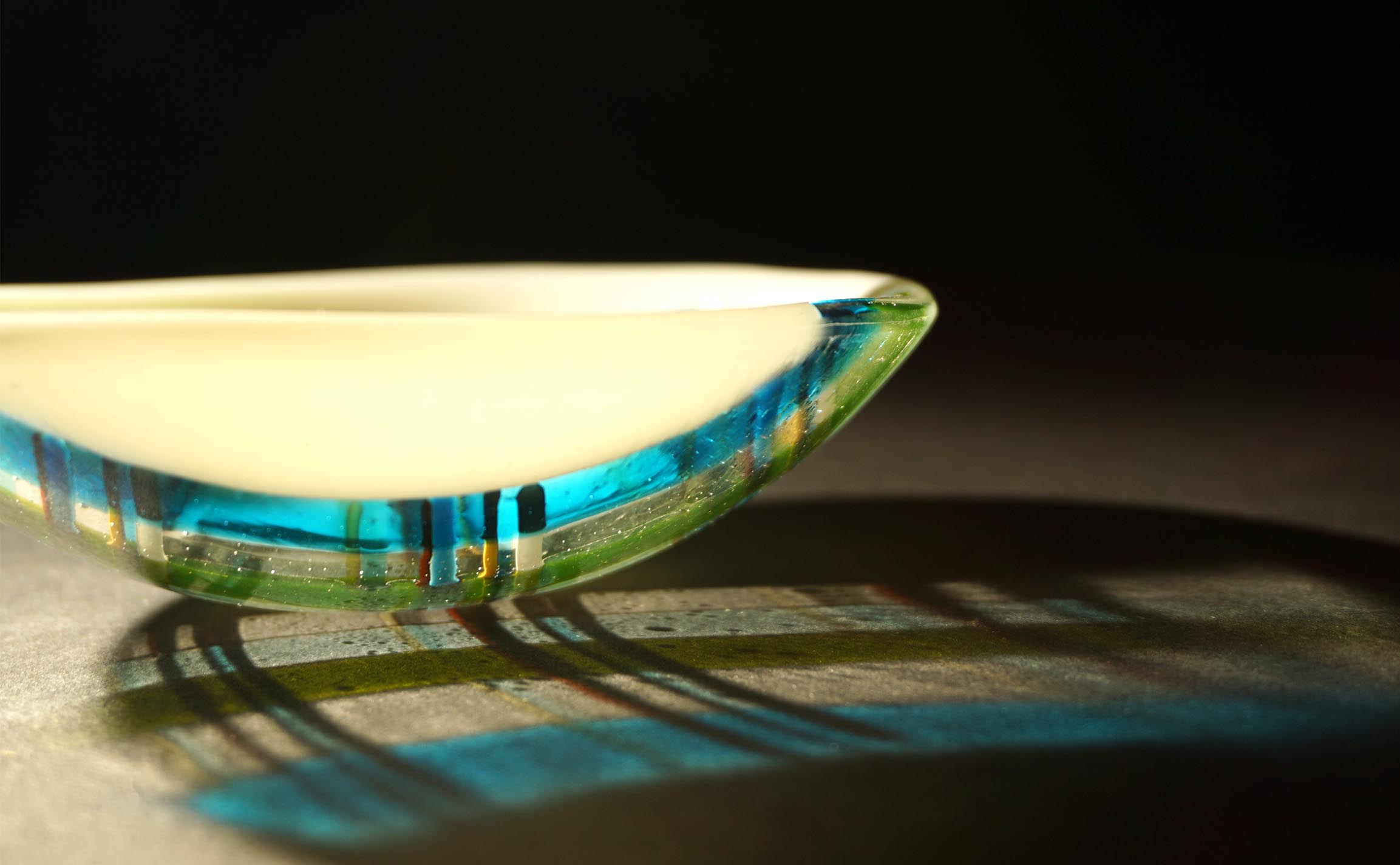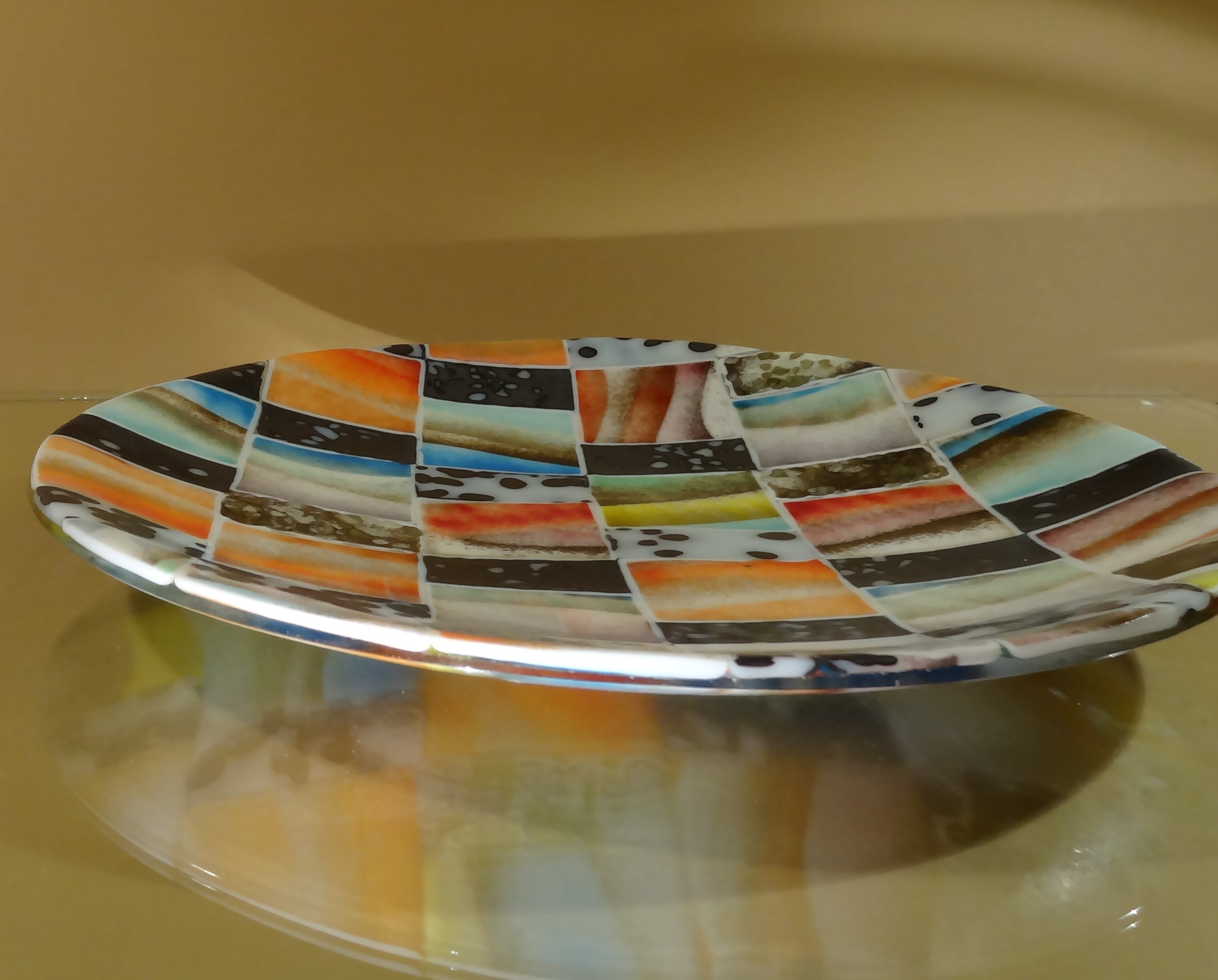 Fusing is my main focus, recently combined with more inventive ways of slumping to give flat glass a more three dimensional aspect. I’m also enjoying experimenting with frit designs so that I can work with thinner glass and create more delicate objects.