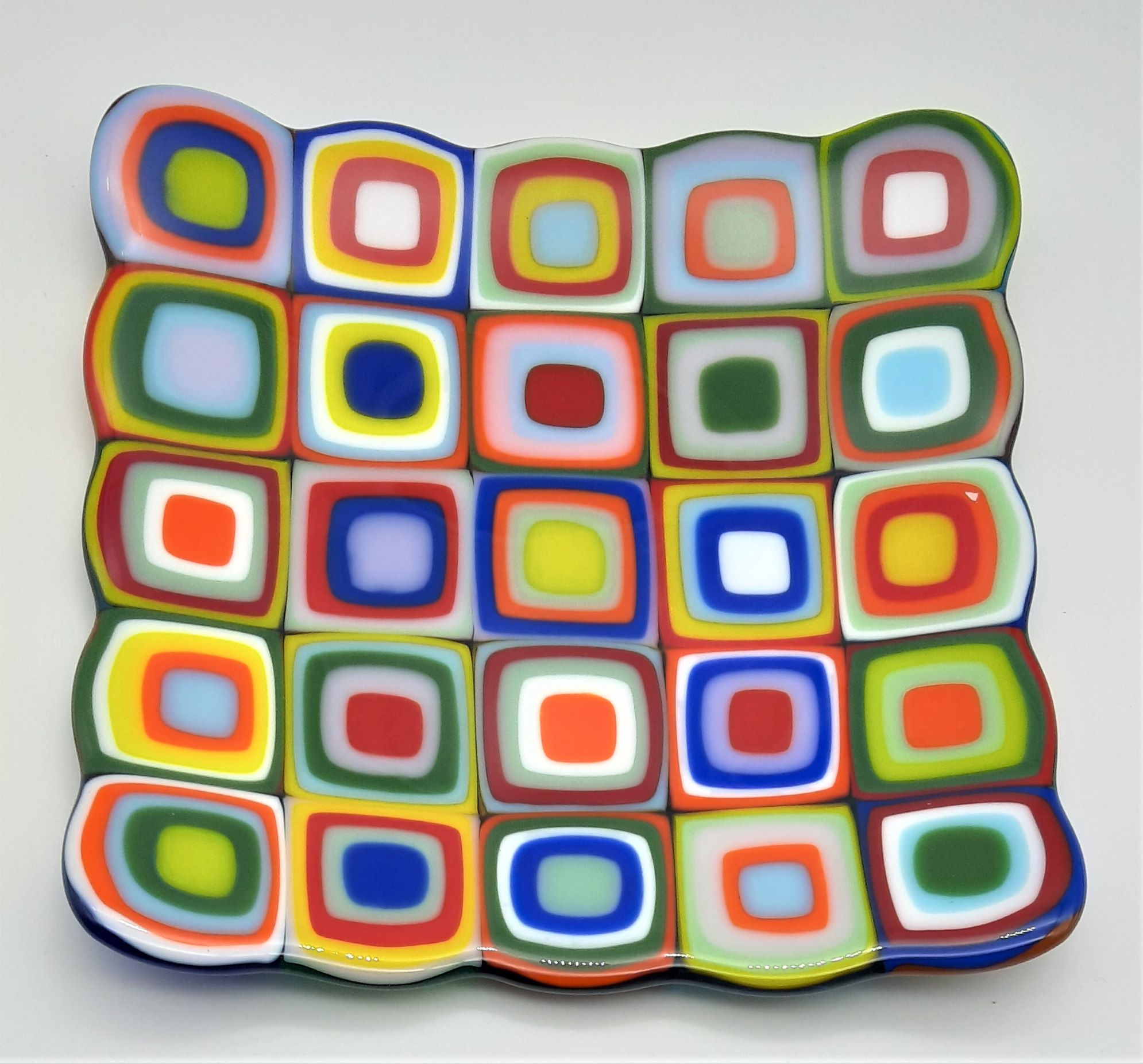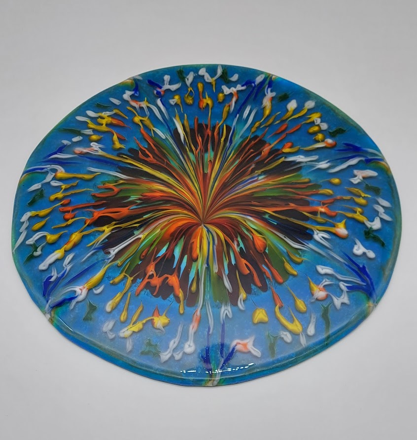Since 2019 I’m doing fusing projects with my kiln. As an example I’m creating vases, tealight holders, dishes and wall decorations.