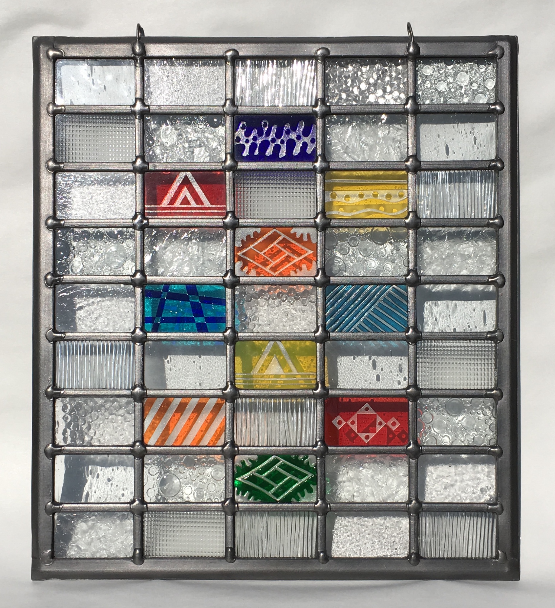 I mainly work to commission for the domestic and corporate markets. Commissions include windows, doors, free-hanging panels, wallpieces and large mirrors. My aim is to create pieces which will make the most of available light, exploit the natural beauty of the glass and remain a source of interest to the client for years to come.