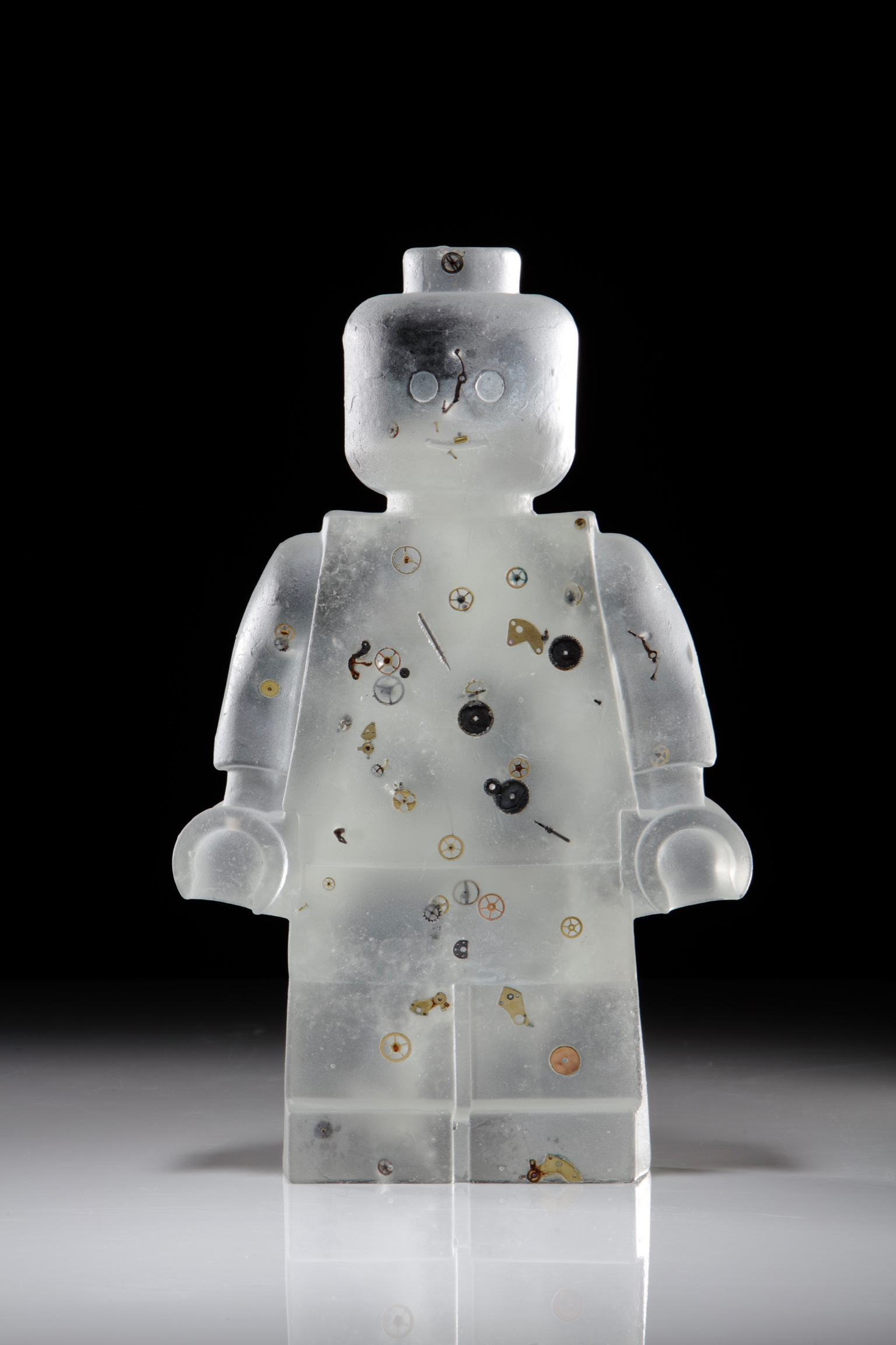 Recycling Narratives, Time & Tide wait for No Man . Cast from 100% recycled milk bottles and upcycled watch parts , Simon Bruntnell