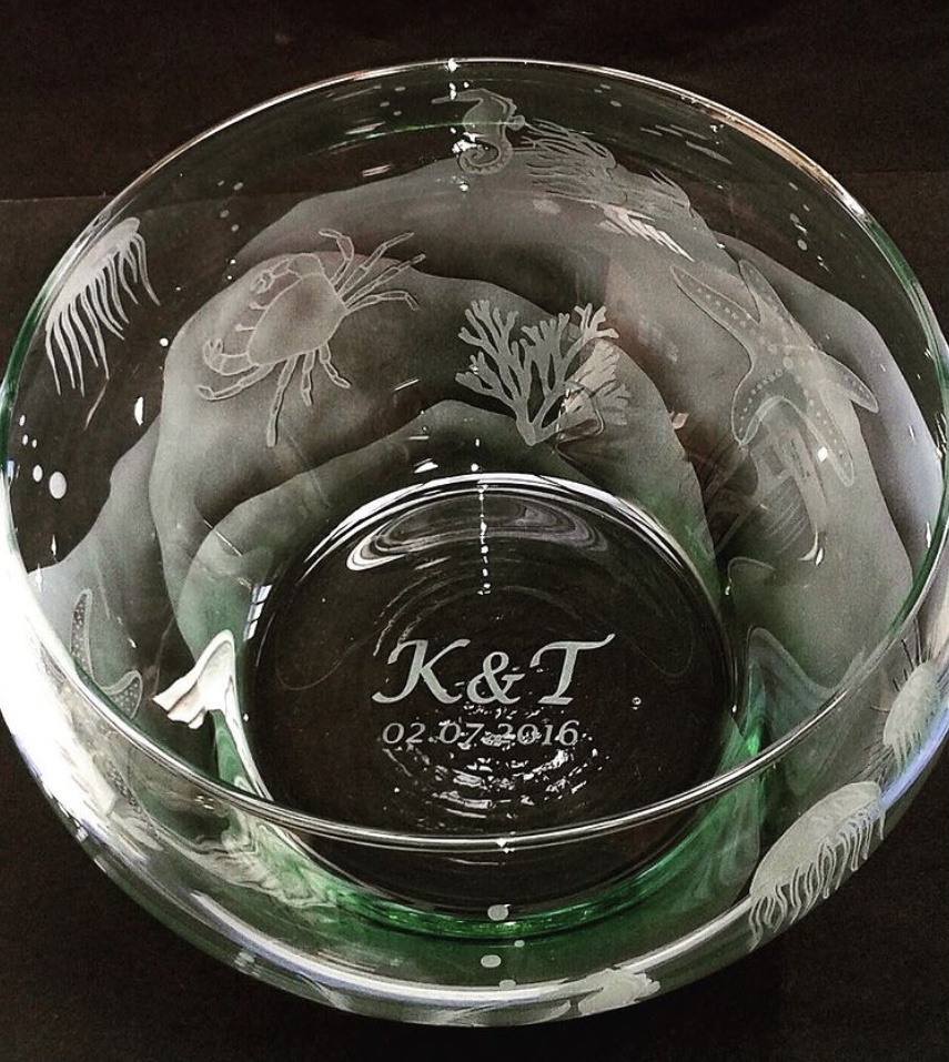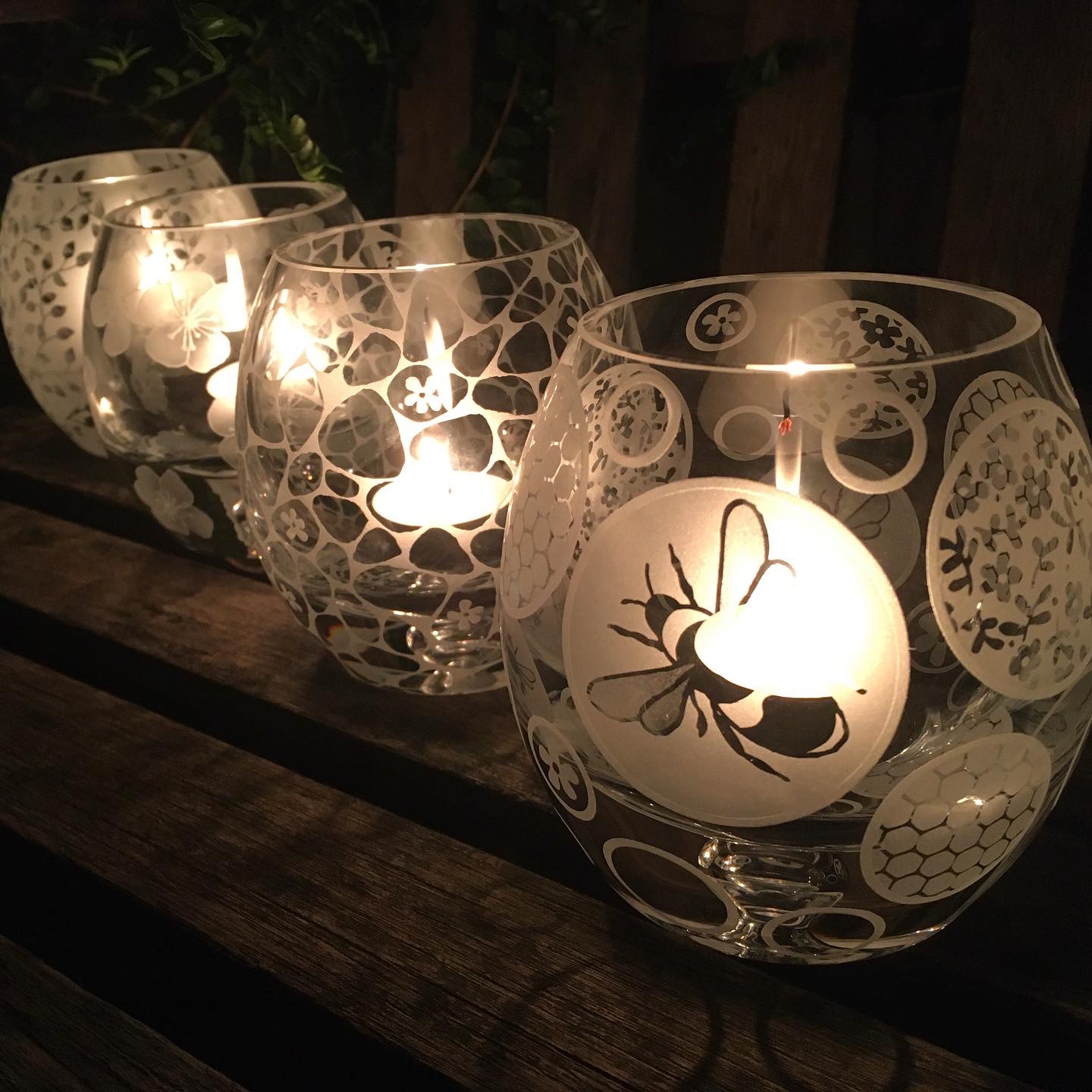 I live in Surrey and have been sandblasting glass for many years. I enjoy the variety of techniques that sandblasting offers, from single stage blasting to shading and especially deeper blasting. I sandblast my own designs and accept commissions.
