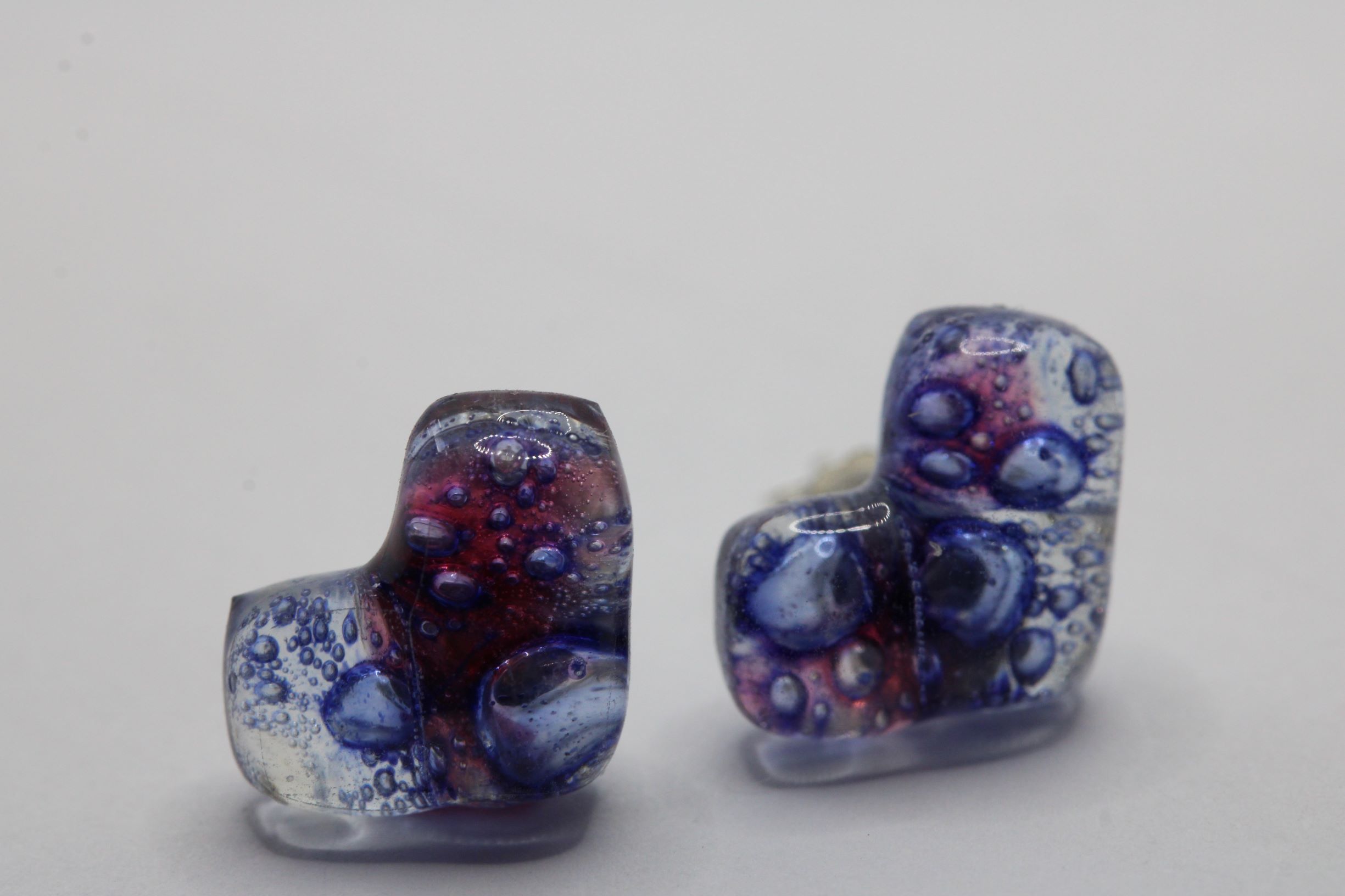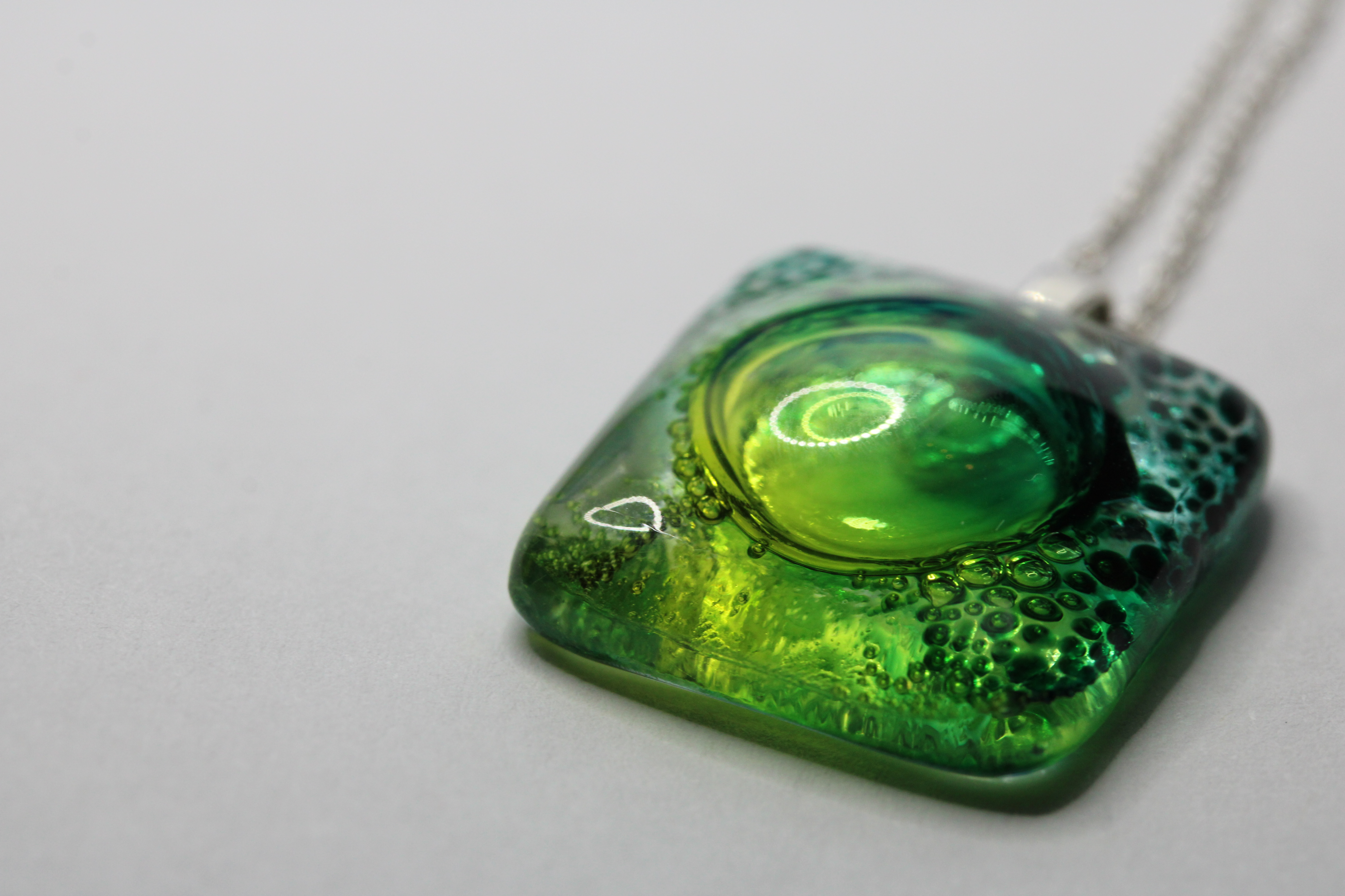 My work is based around my final pieces that i created during my degree but on a much smaller scale. Each piece of jewellery is unique due to the organic creation of bubbles. Recently i have been experimenting with metal inclusions and adding more colour to my pieces.