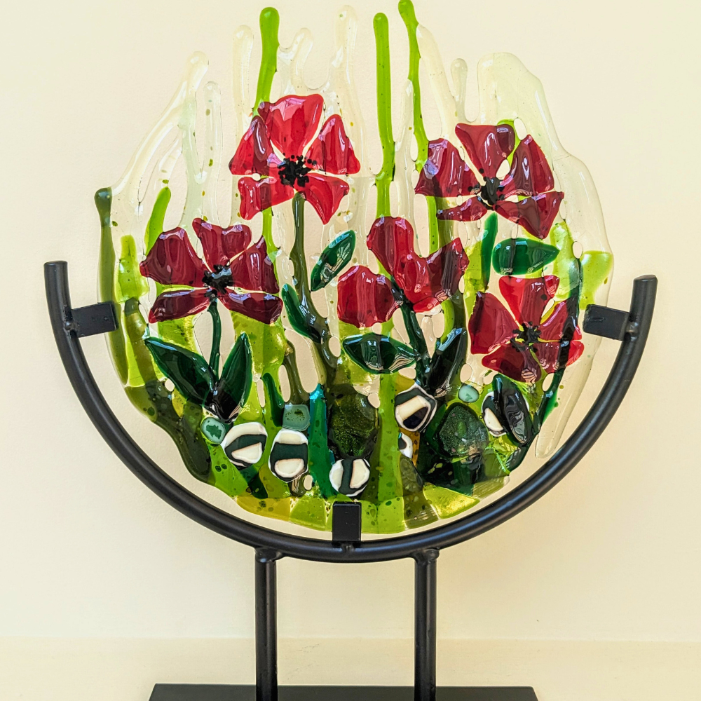 For my last ‘fun’ creation, the Poppy vitigraph bowl, I repurposed a small kiln to pull vitigraph and built up the bowl in layers with hand cut poppies to give it strength.