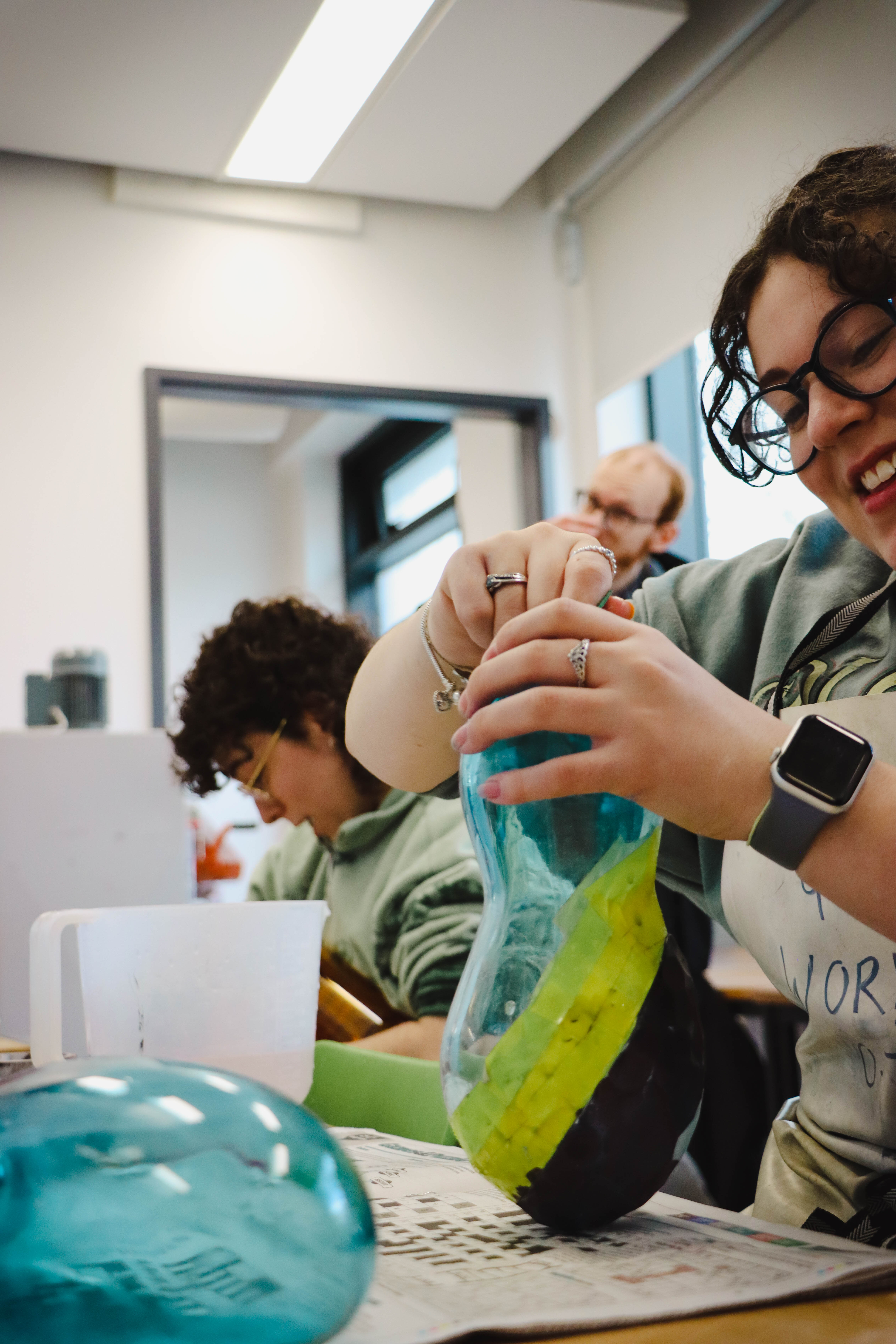 This insulation is all about me reconnecting with my father and his side of the family. I have been looking at segments within the fruit that my great-grandad grows in his garden, which led to looking at cells and DNA patterns within this project. The reflections from my pieces remind me of cells and I thought this would be great to explore further. Through the techniques of cold-working and embellishment, I have managed to incorporate the patterns within this process. The patterns have then been emphasised by the lights inside the glass pieces. I selected colours present in the photographs that were sent to me by my Grandad of the Caribbean, his hometown and his local shops as I didn’t want to be inspired by the typical bright colours that everyone normally assumes of Jamacia.
