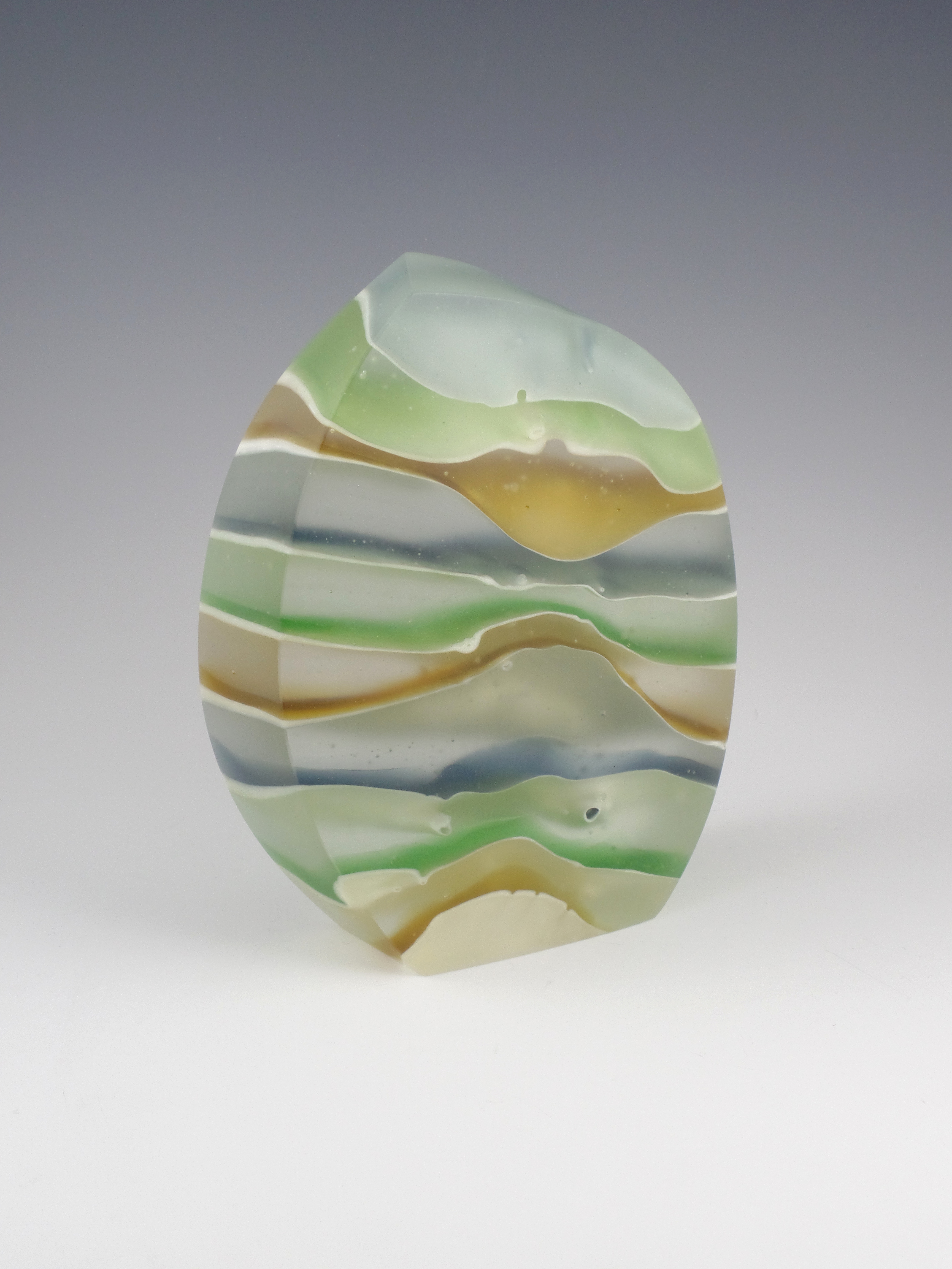 Glass sculptures are my focus. Each piece goes through multiple steps that can include firings in the kiln, lamination and cold-working.