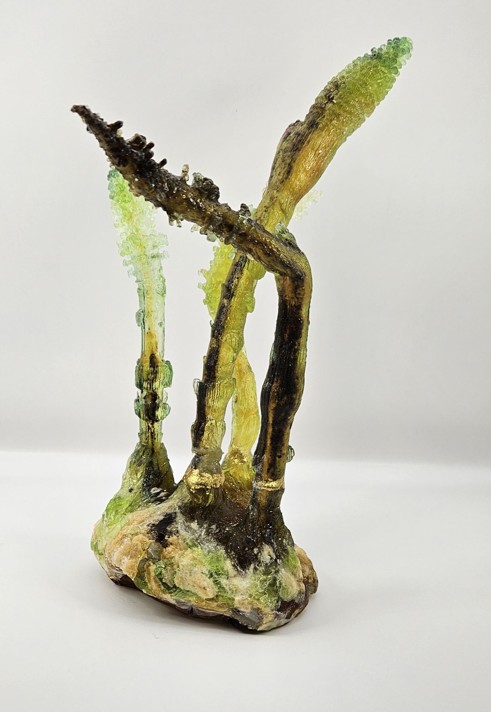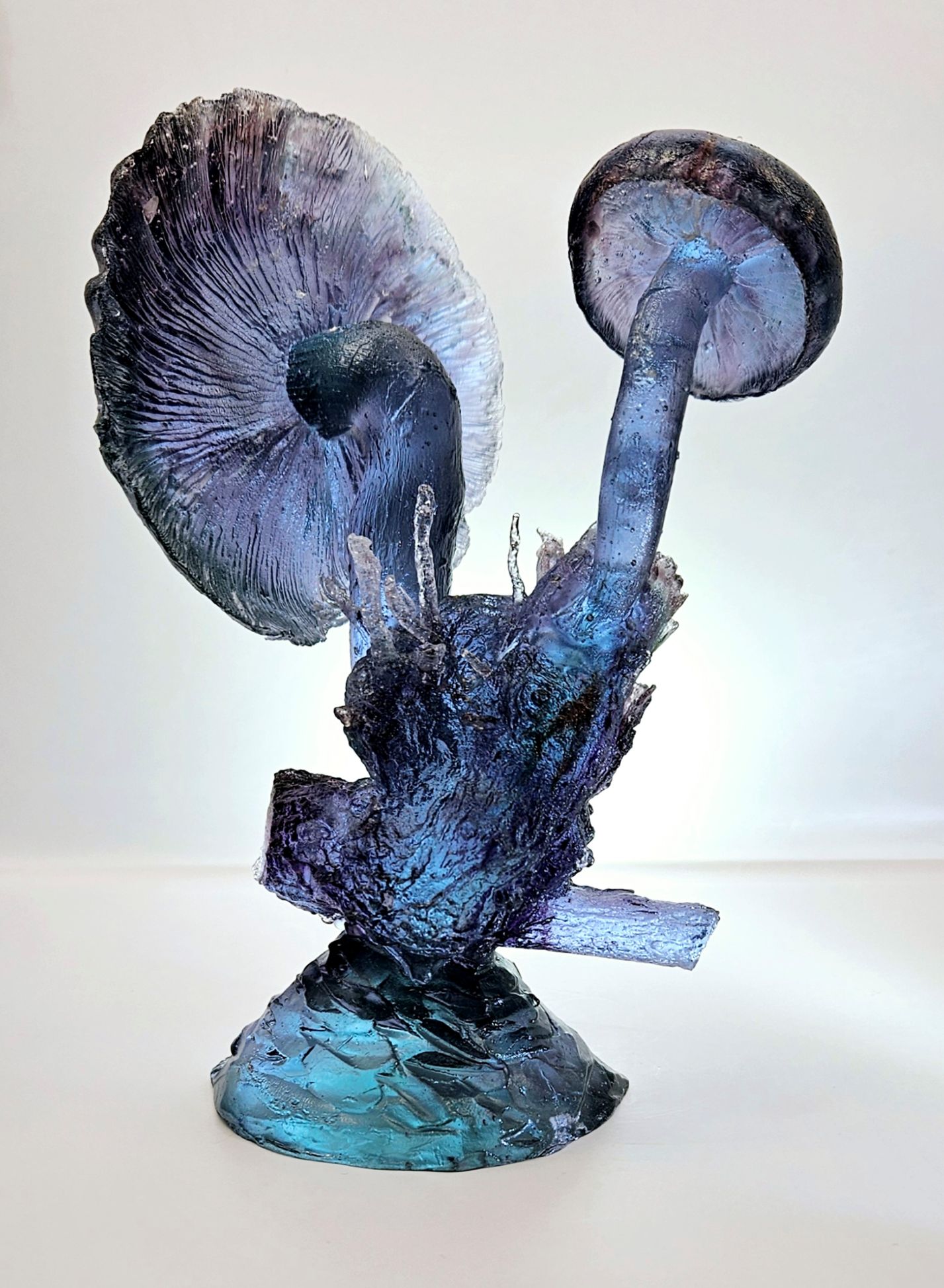 My recent sculptures are organic in nature. They are inspired by and made from a range of sometimes strange and always wonderful natural objects and organisms. I have a particular love for fungi and I use them in an allegorical way. For me they symbolise the fragility of ecological systems and organisms in a state of crisis, as well as the beauty and complexity of the natural world. Glass is the most magical, ethereal and sublime material and it captures something of the mystery and wonder of the world and life around us. My pieces are sometimes anthropomorphic and playful, at other times abstract and emotionally charged. Very often I explore ideas around corporeality, bodily functions and human health in relation to the health of the planet, life cycles, ageing, growth and decay.