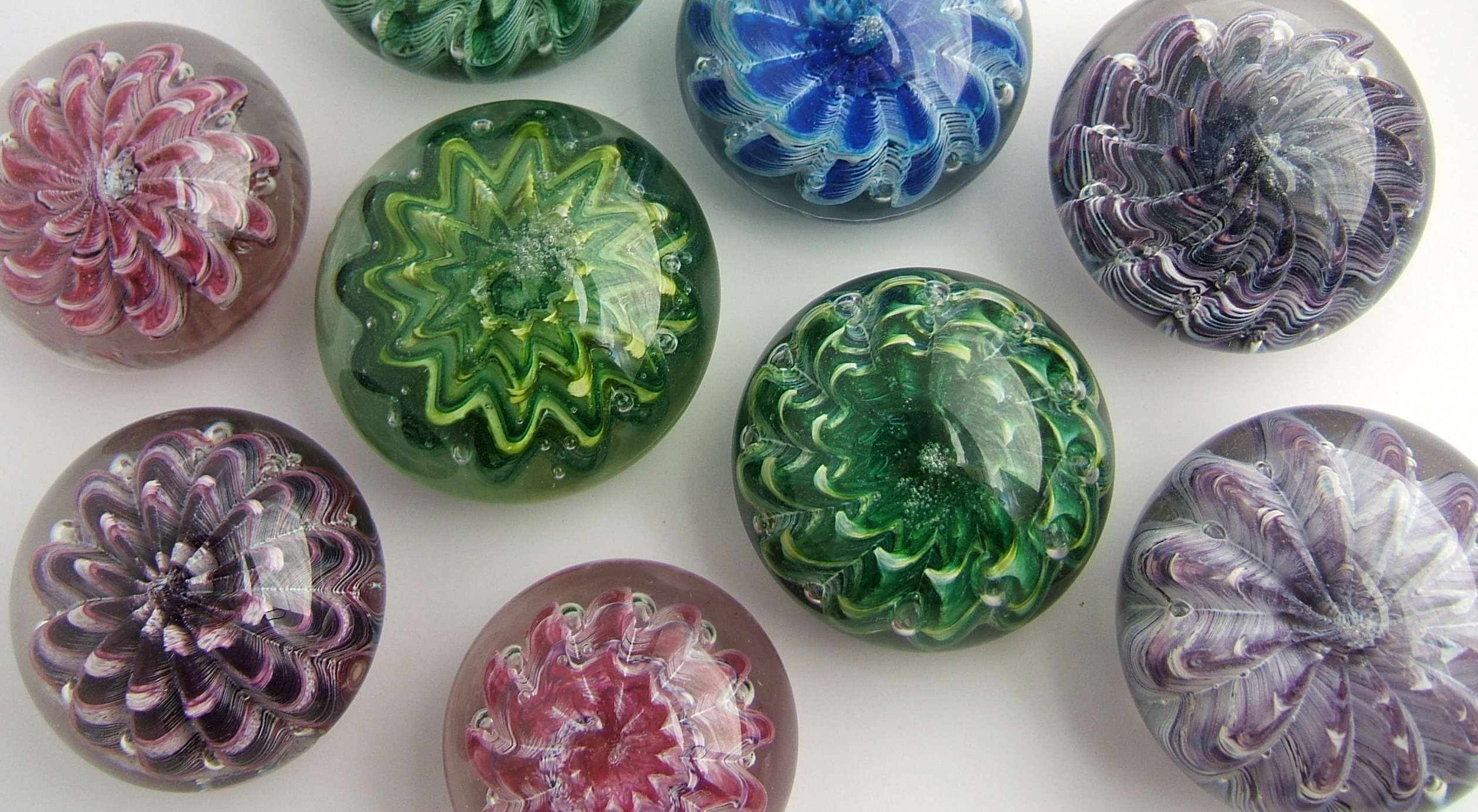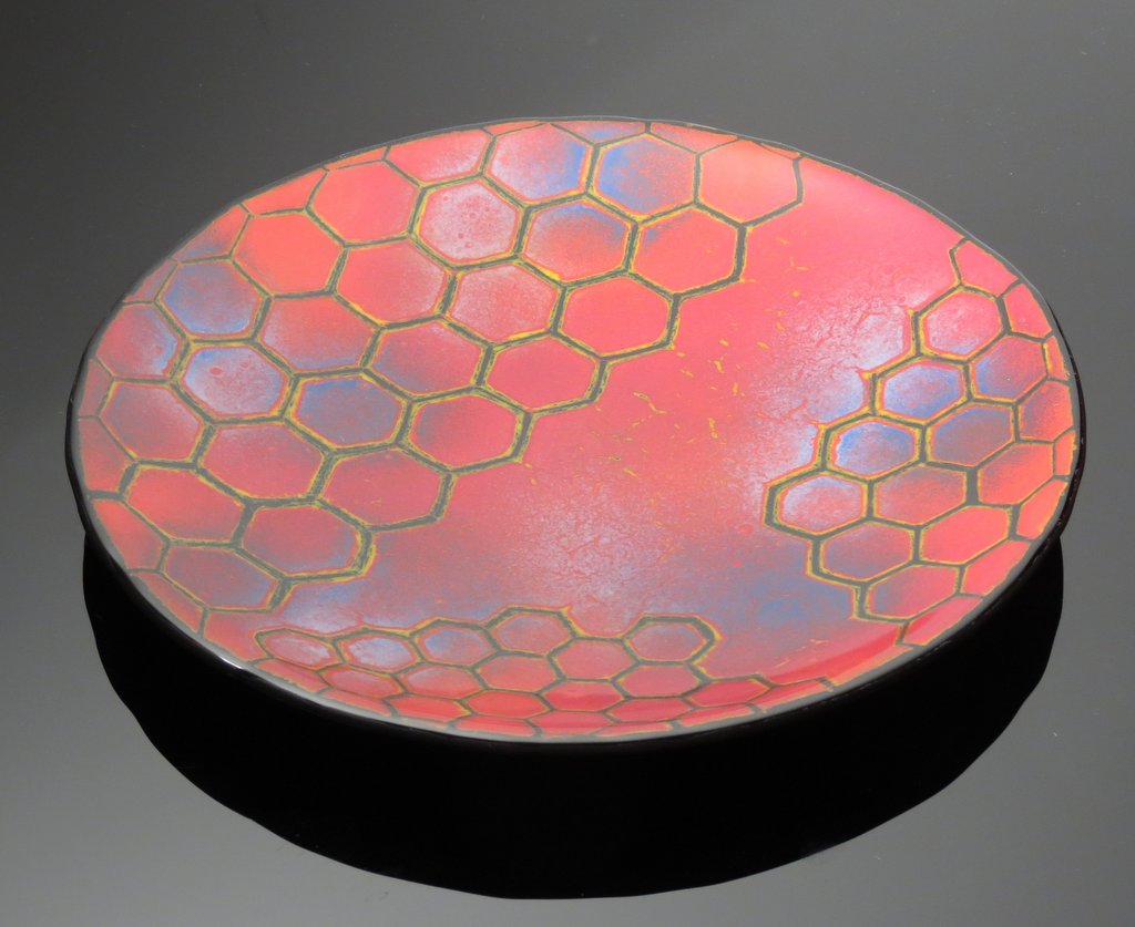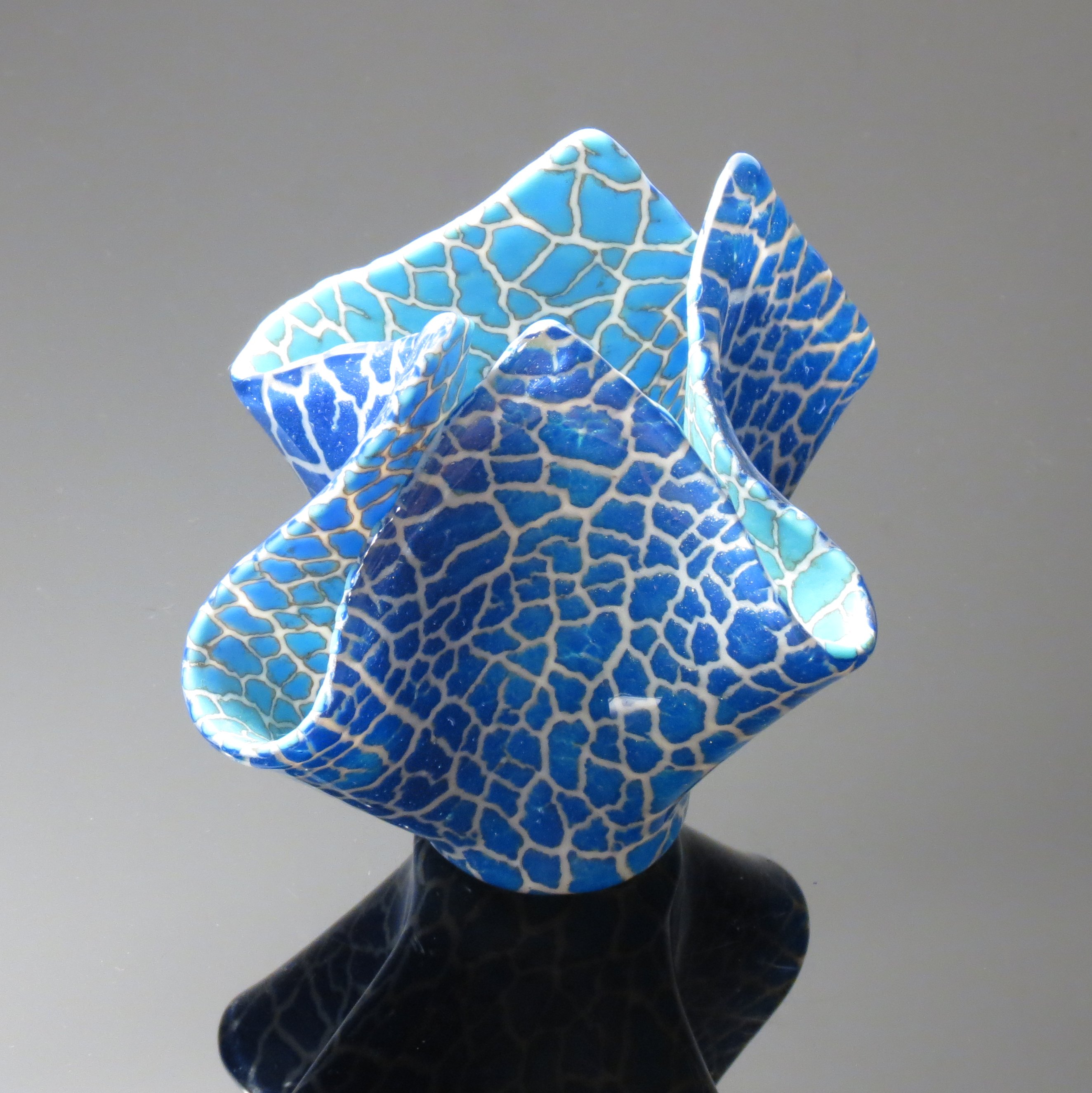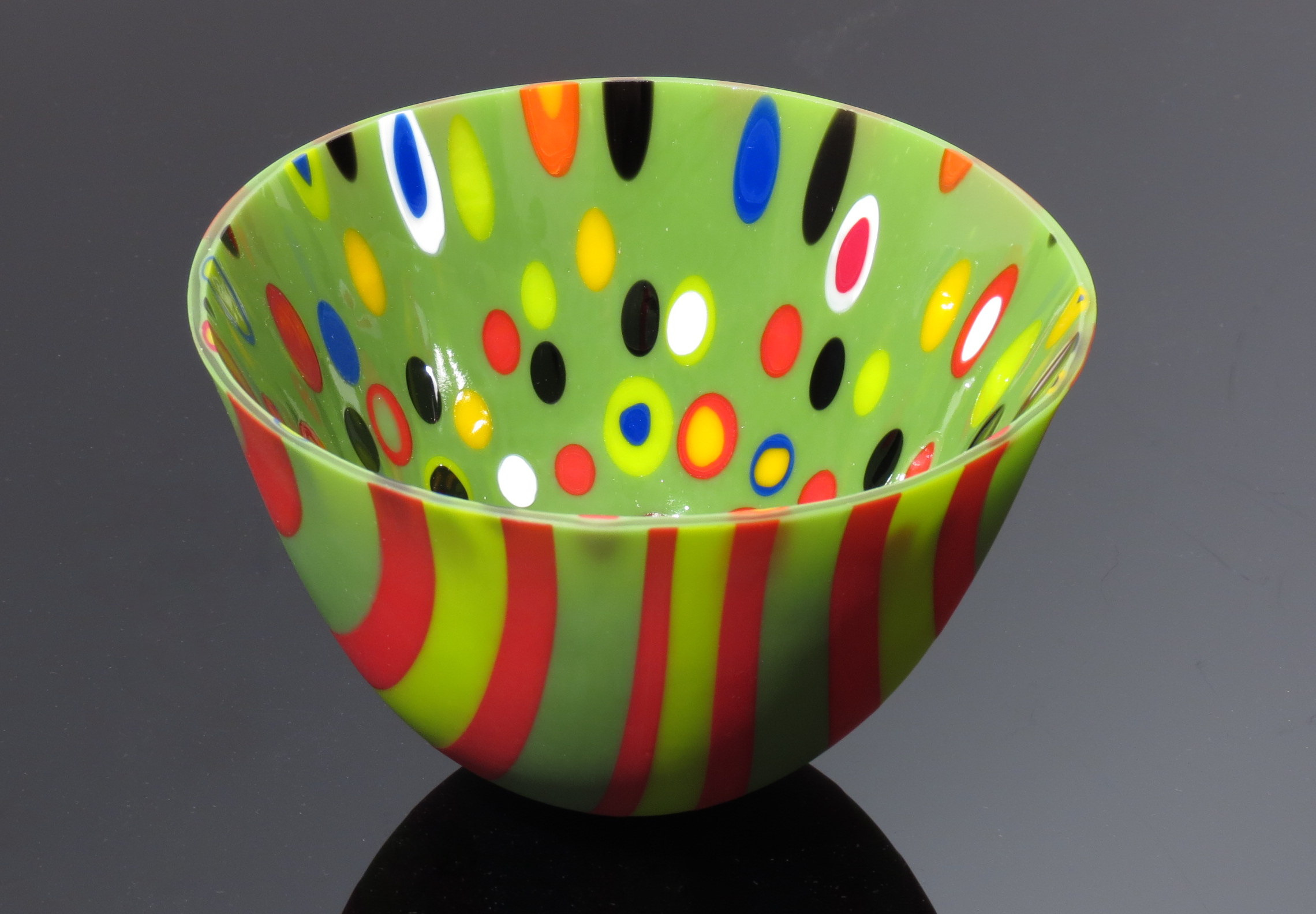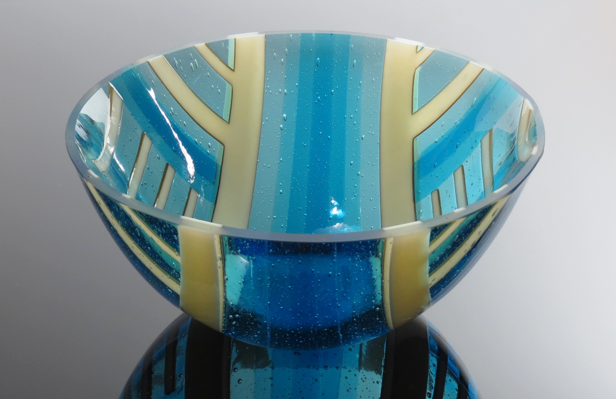 I work mainly in warm glass exploring colour and form together with pattern, texture and chemical reactions. My vessels usually have different interiors and exteriors but a relationship between both is maintained. I have also worked in hot glass exploring the depth, patterns and shapes possible within a paperweight.