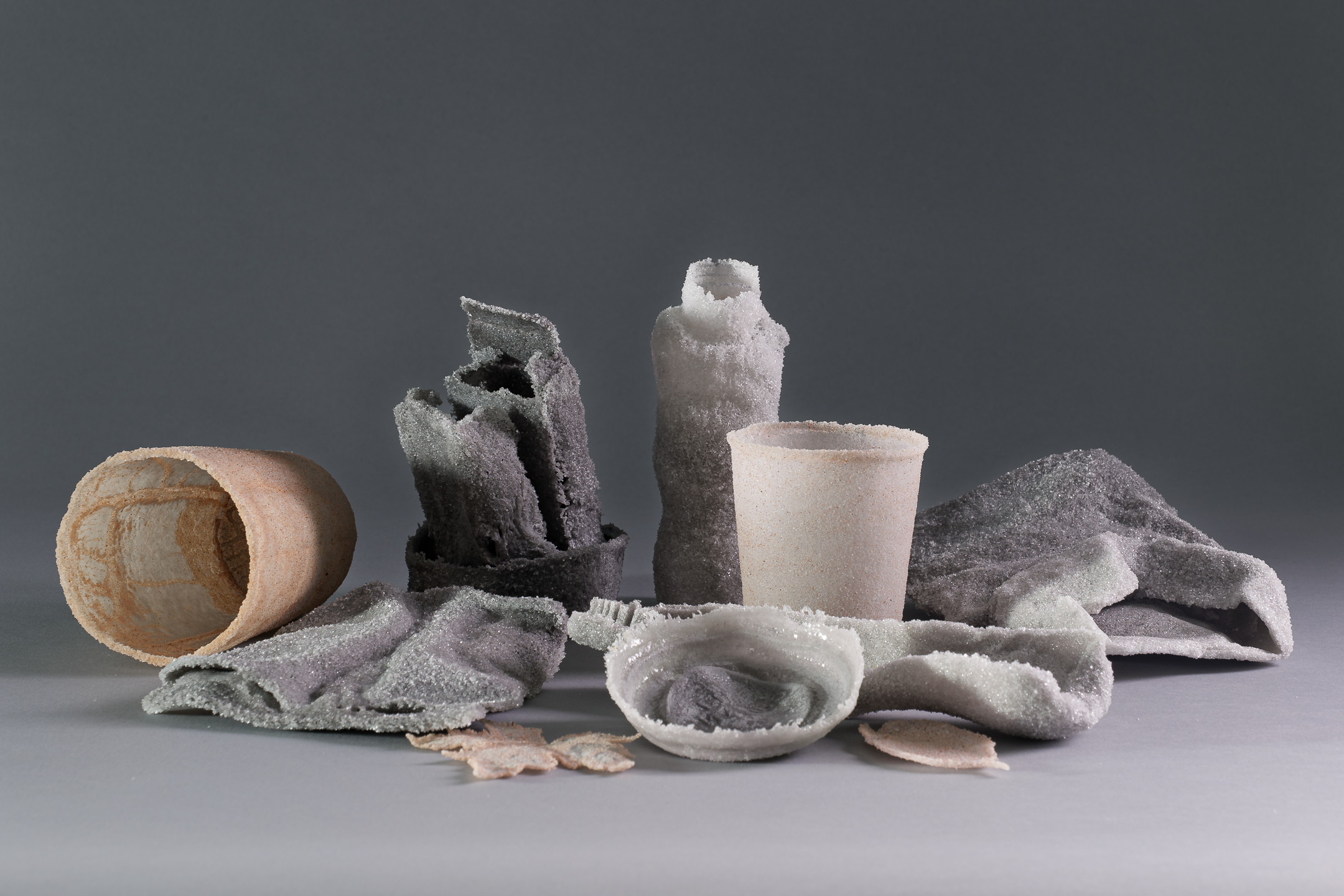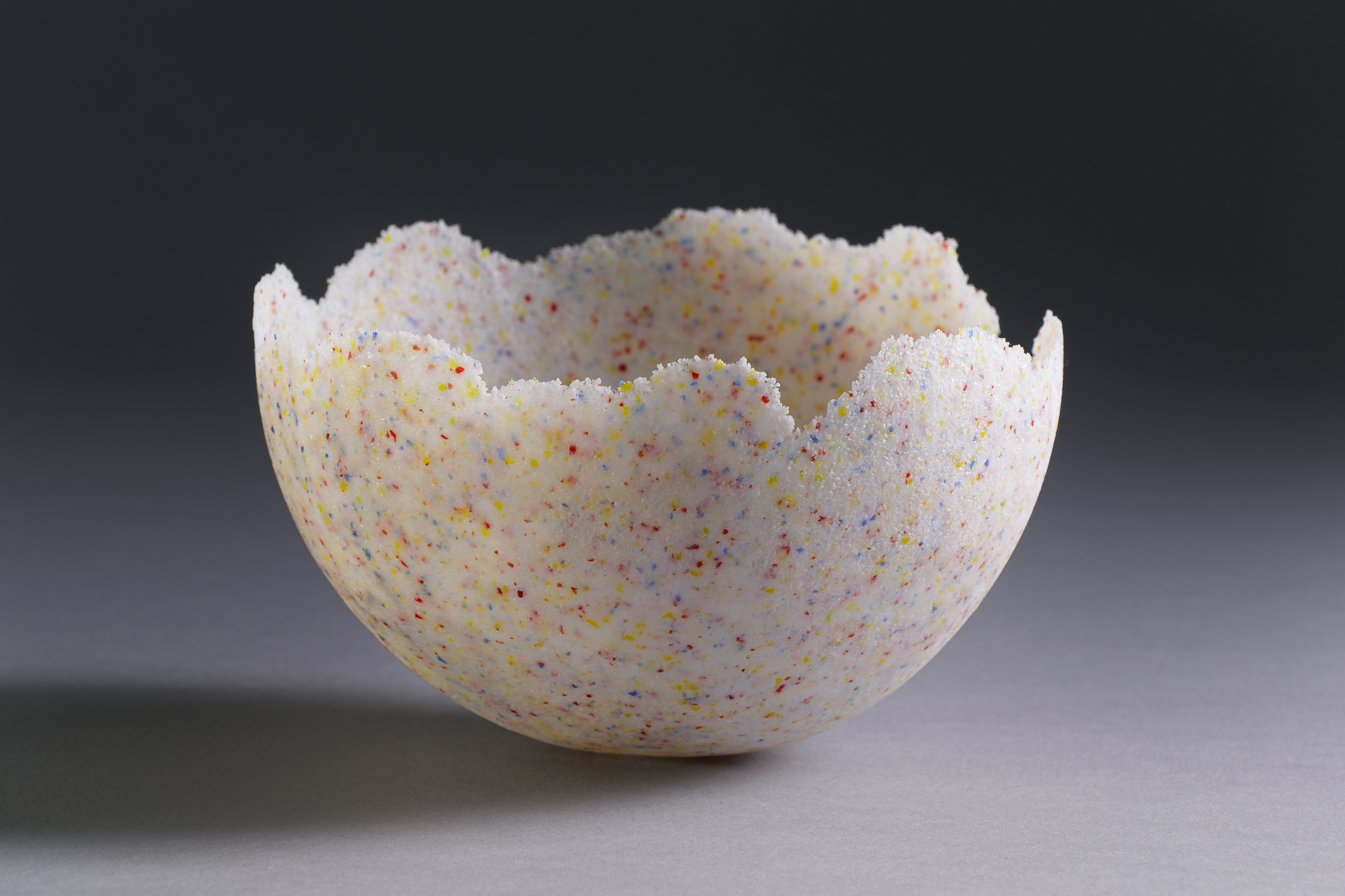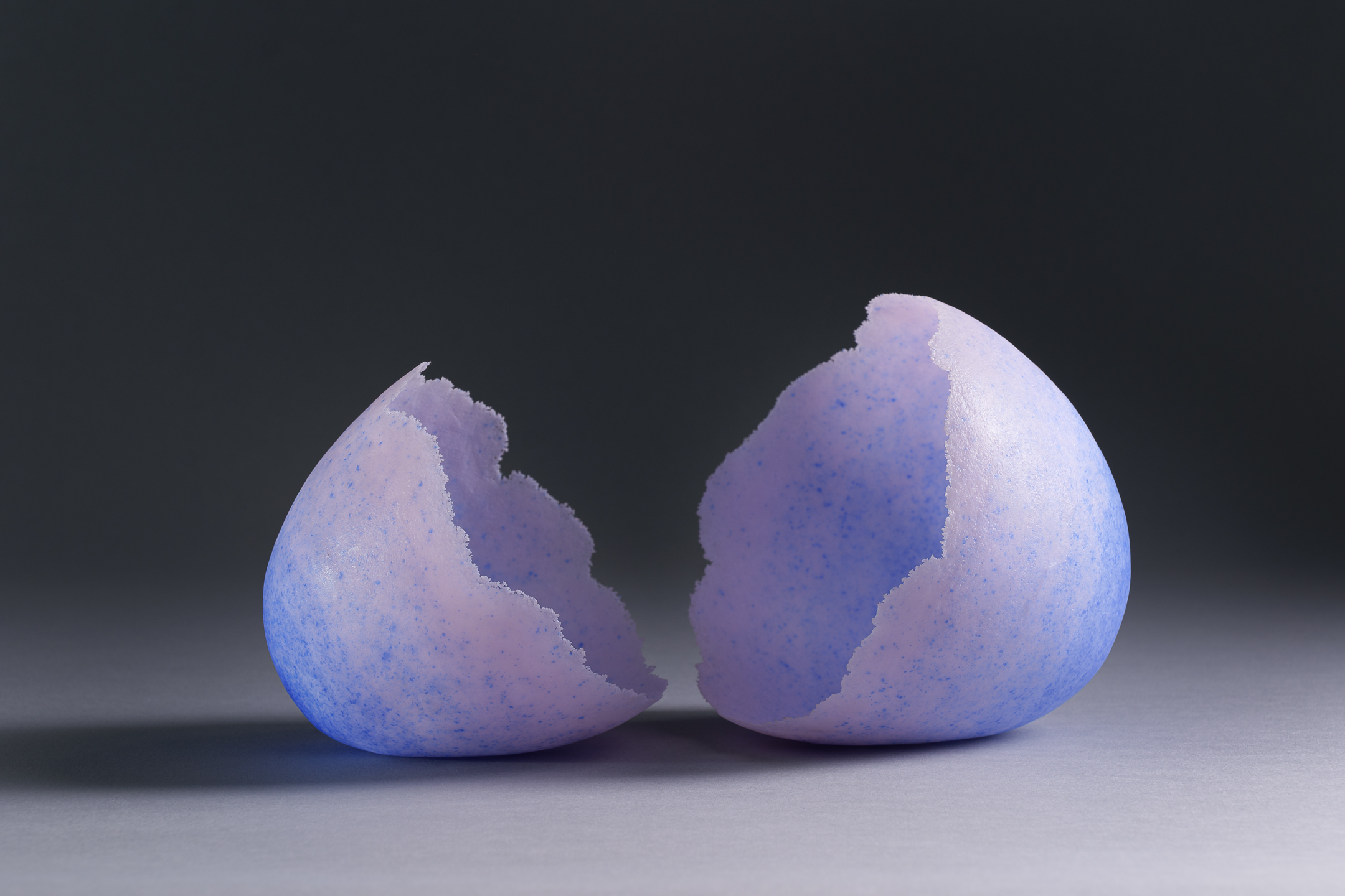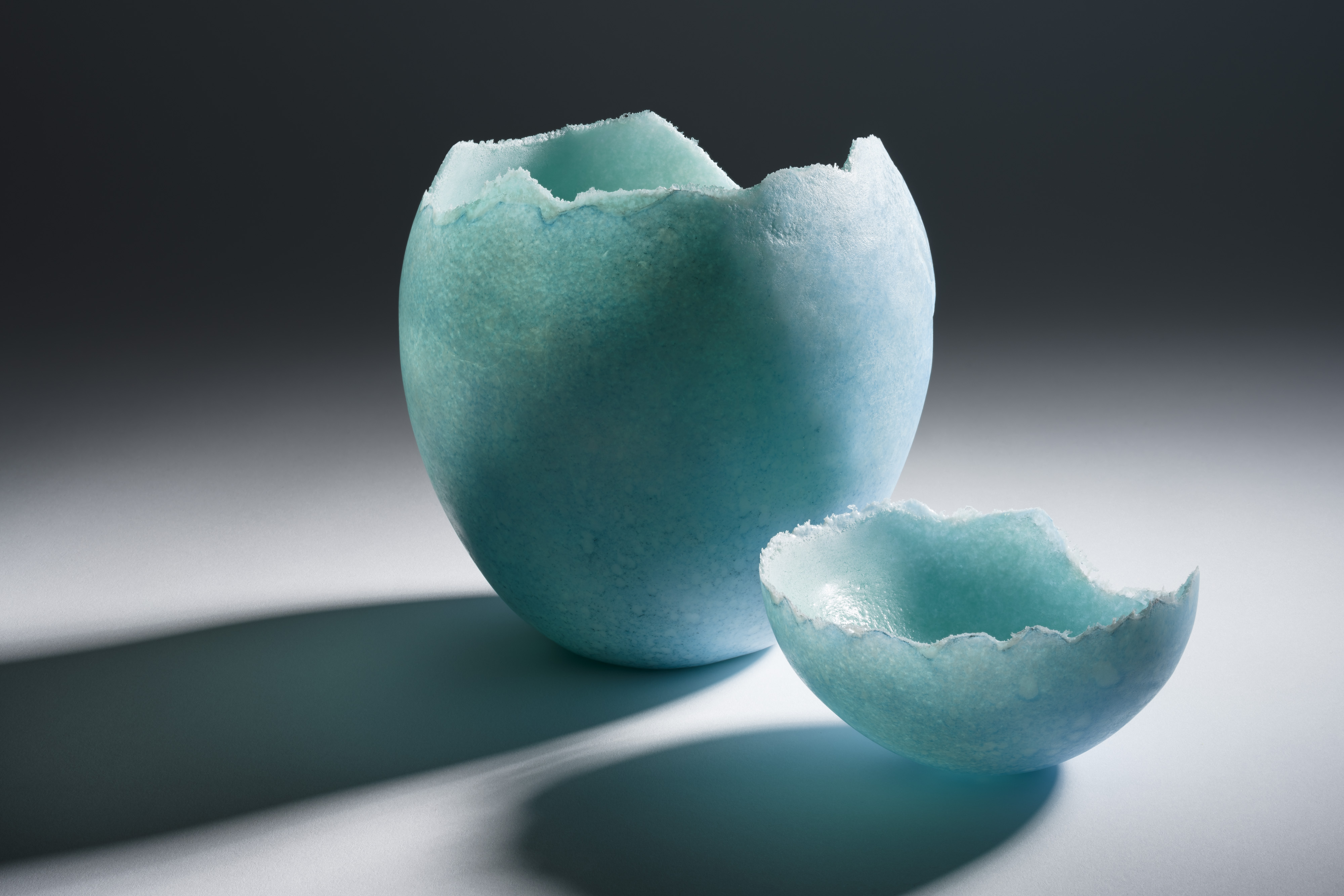 The making process is time consuming and is often fraught due to the complexities of the material. Considerable skills and knowledge need to be amassed with an acceptance that you do not have full control over the outcome. The works use a familiar everyday material to represent forms not normally experienced in glass allowing the viewer to question the object and its meaning.