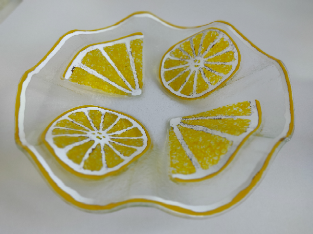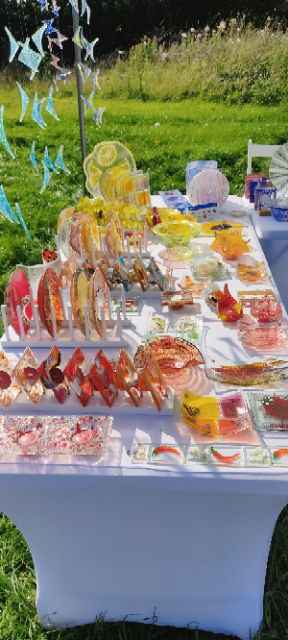 Fused glass functional pieces sold at craft markets in the UK and France.