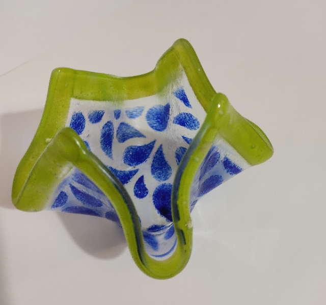pistachio and cobalt blue handkerchief bowl , MMM Handmade Glass