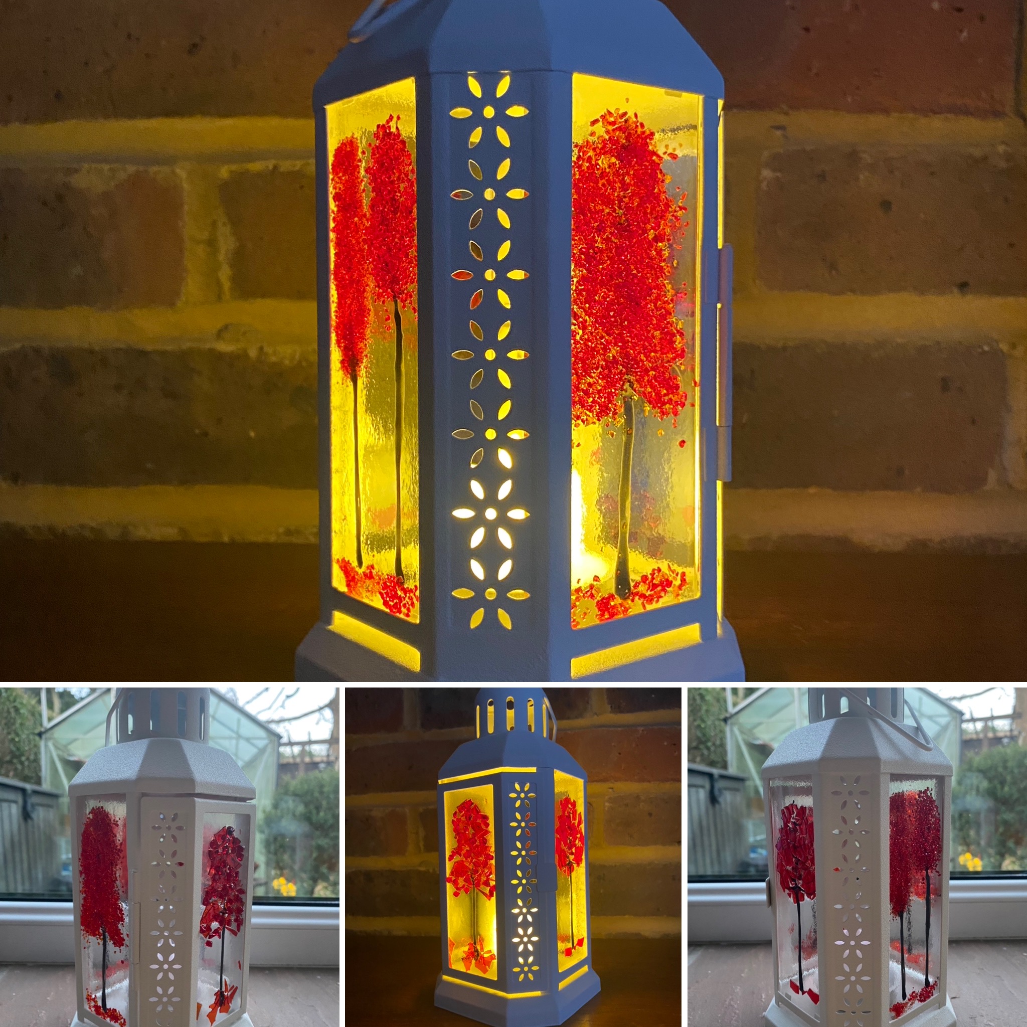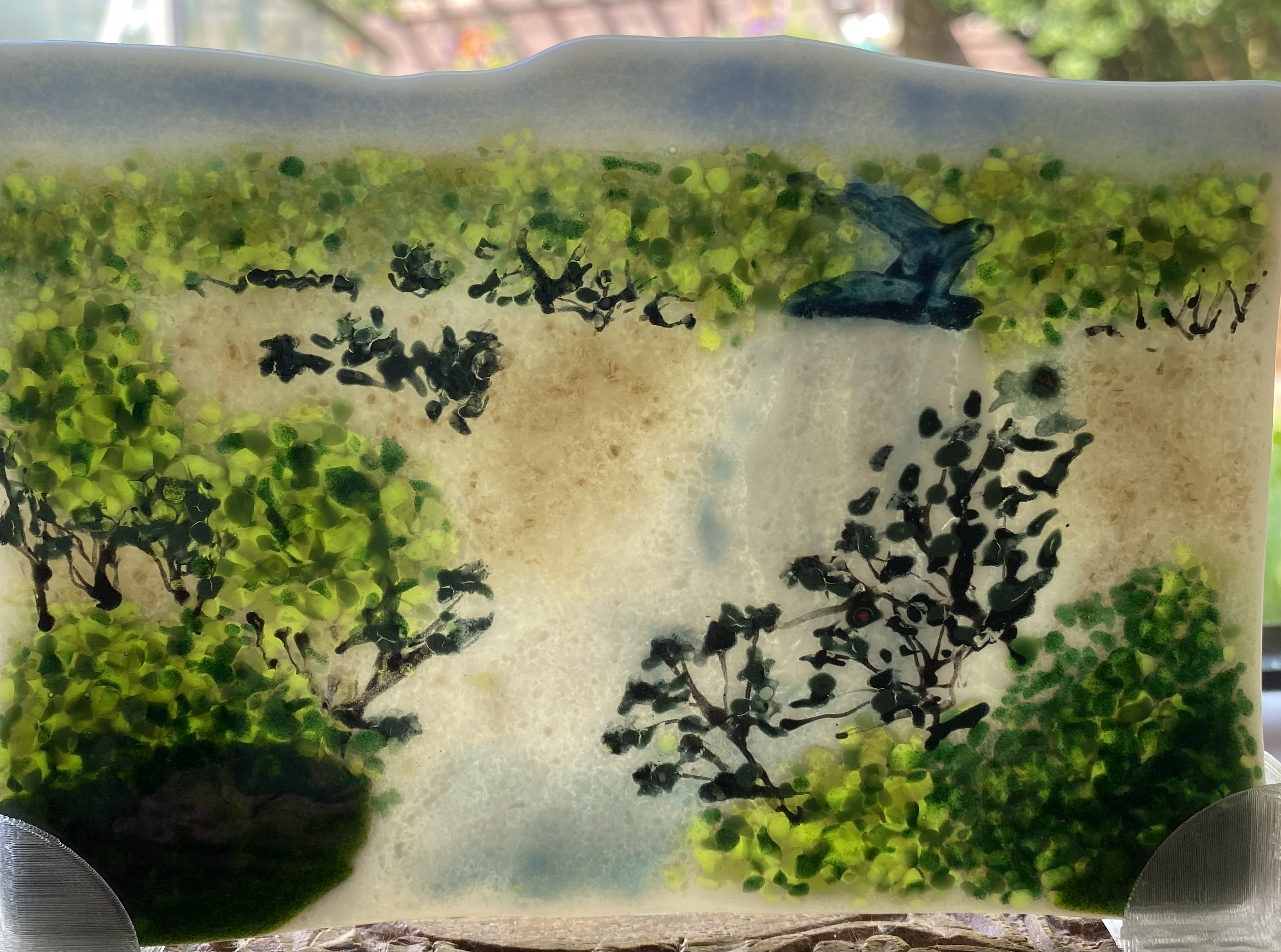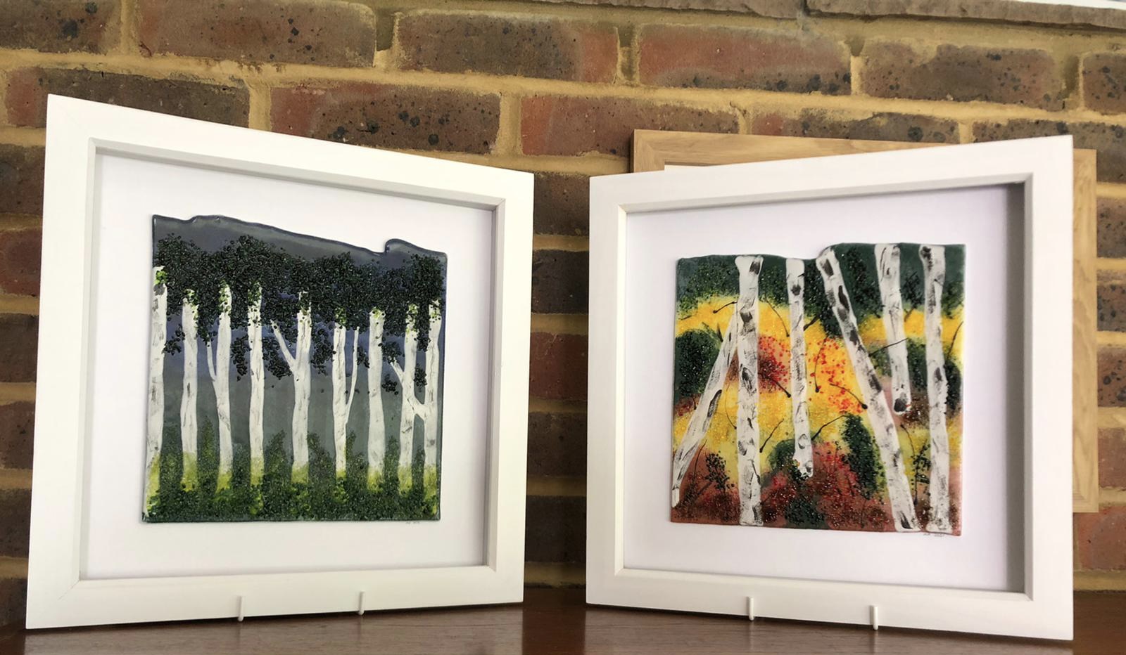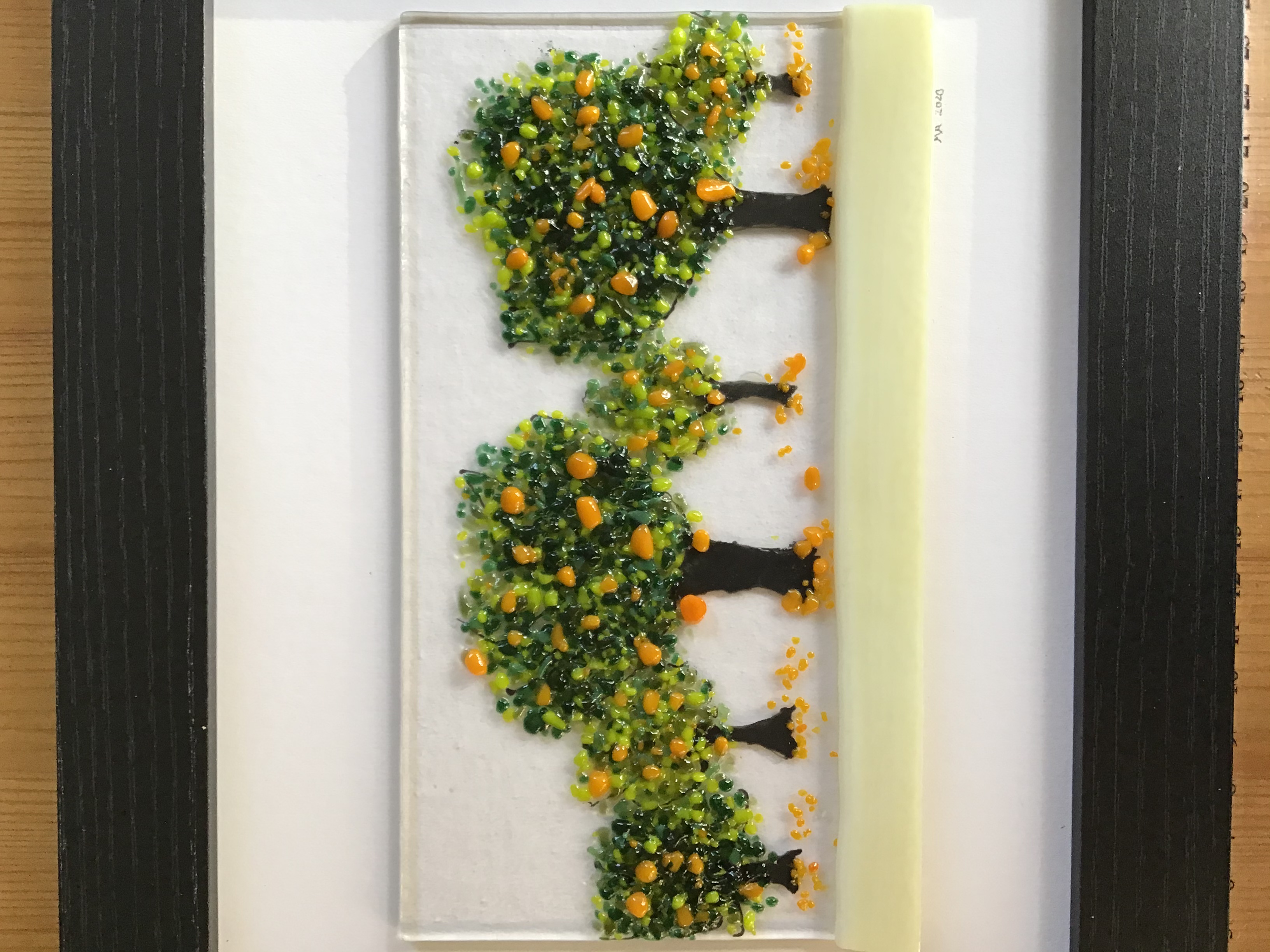 Fused glass trees, flowers, seascapes, beaches, decorations, suncatchers, coasters, tealight holders, lantern panels, greetings cards and some quirky items.