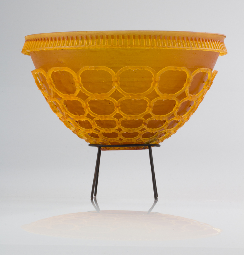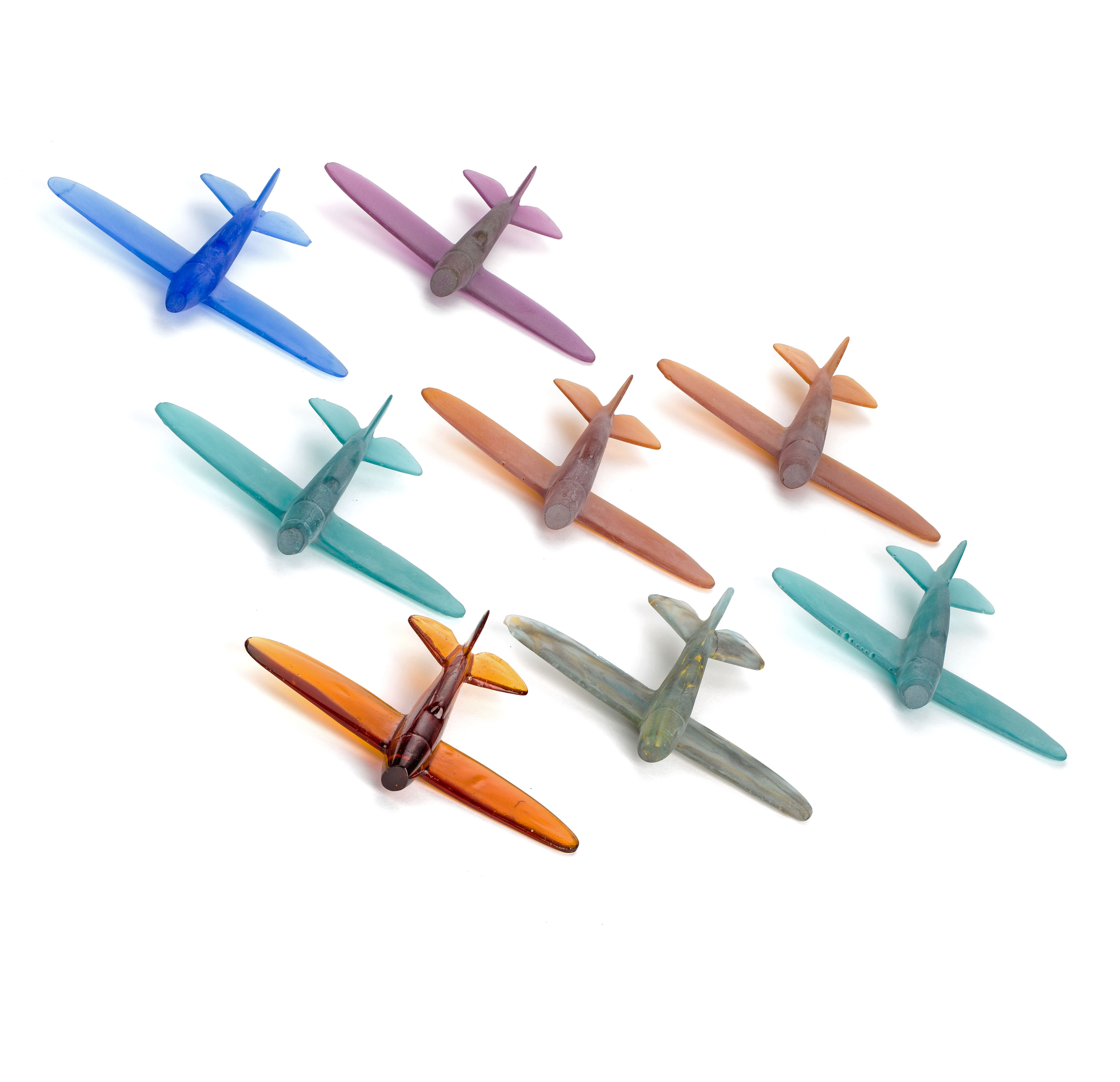 My collection includes pieces based on these Roman cage cups, using 3D to design and print them before casting in glass. The process is a variation of the lost wax method which has been used for hundreds of years to create objects in glass and metals. Other designs are made from a cast of an airplane my grandfather made, with this design I use cast and blown glass to create my plane in bubble collection