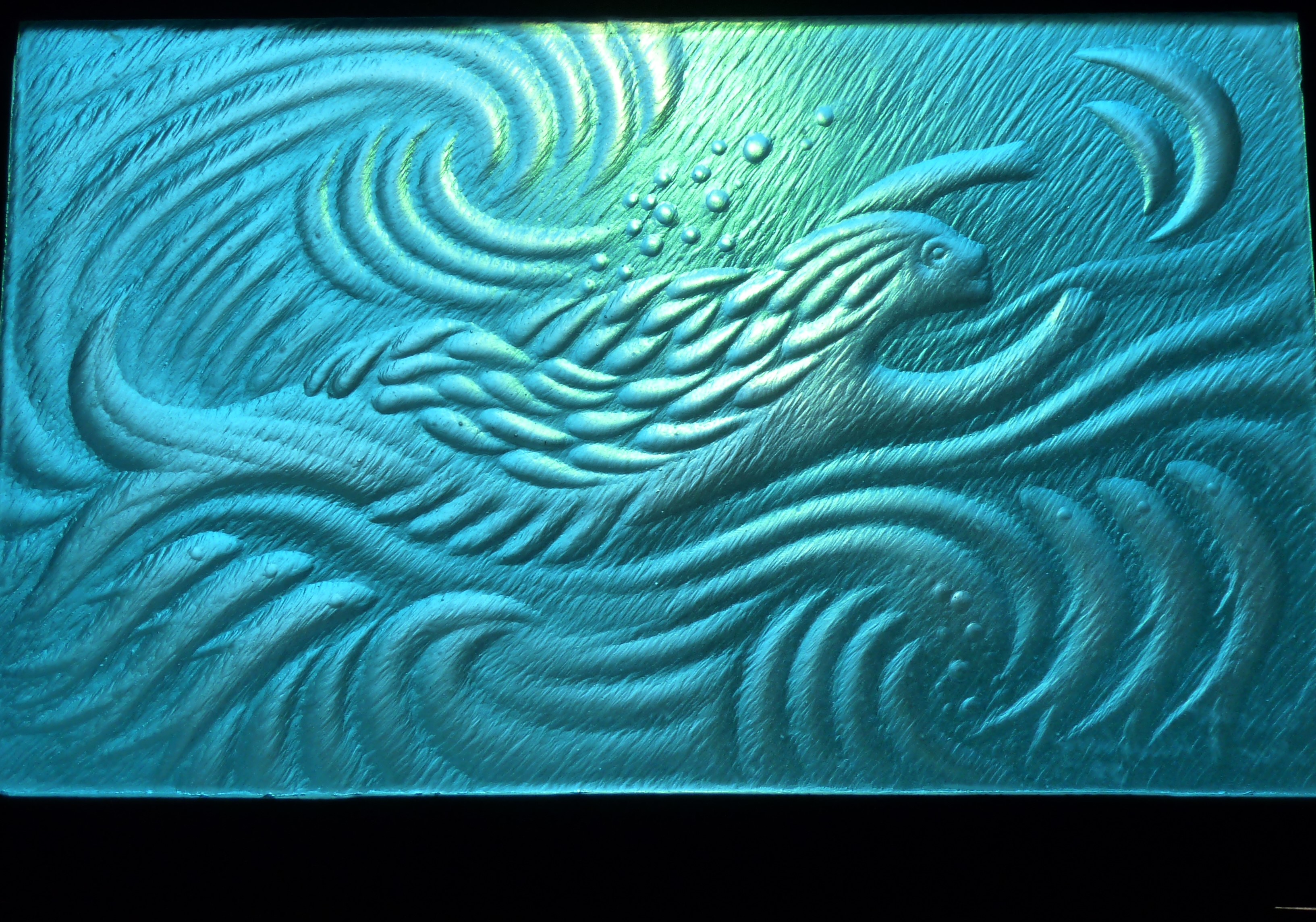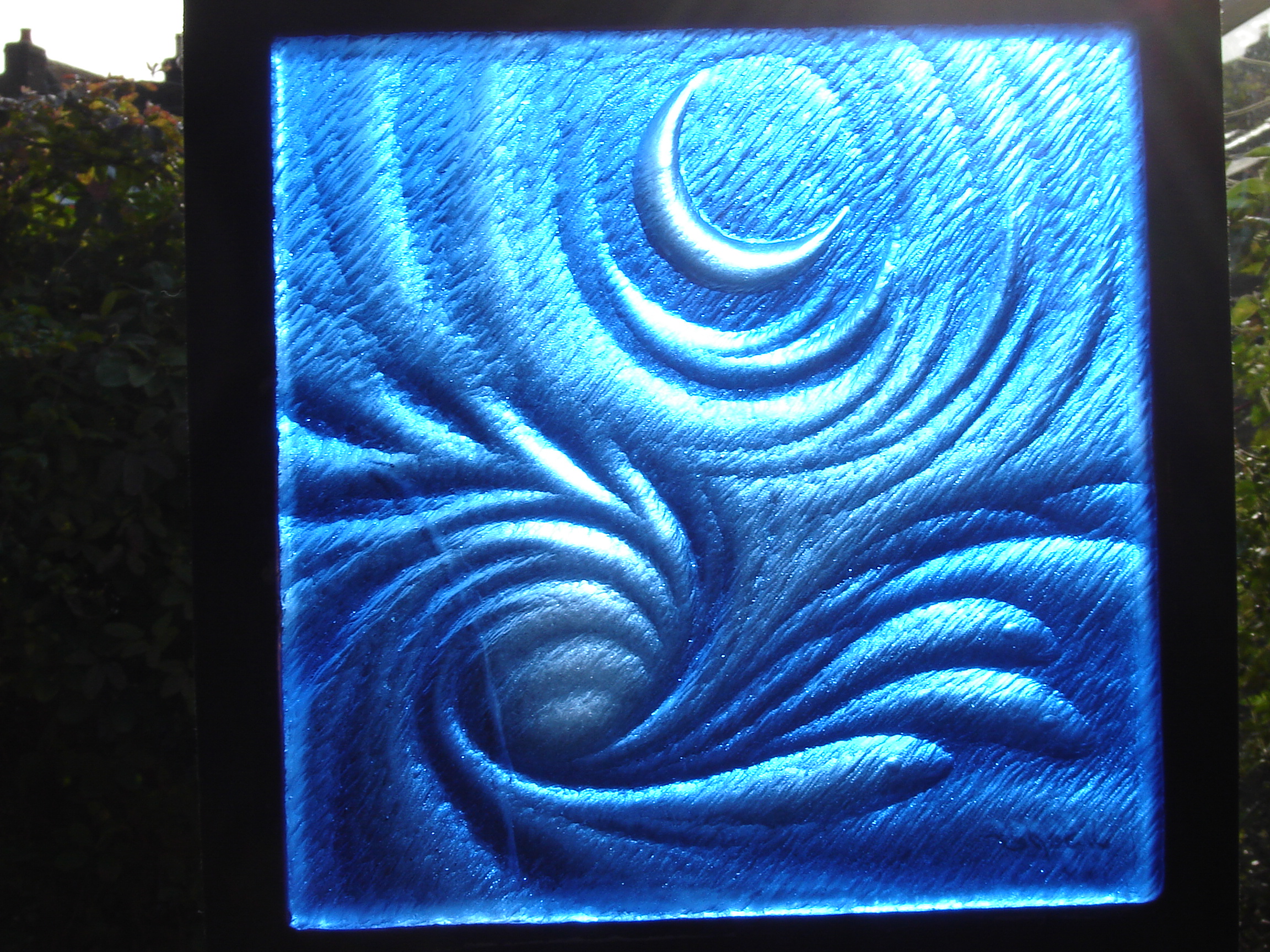 As the engraved coloured glass becomes thinner the colour lightens, and the sculptural relief of the surface brings a subtle changes to the motif depending on the viewers direction. My designs are sometimes figurative, sometimes more abstract, but I am happy to work with designs by other people.