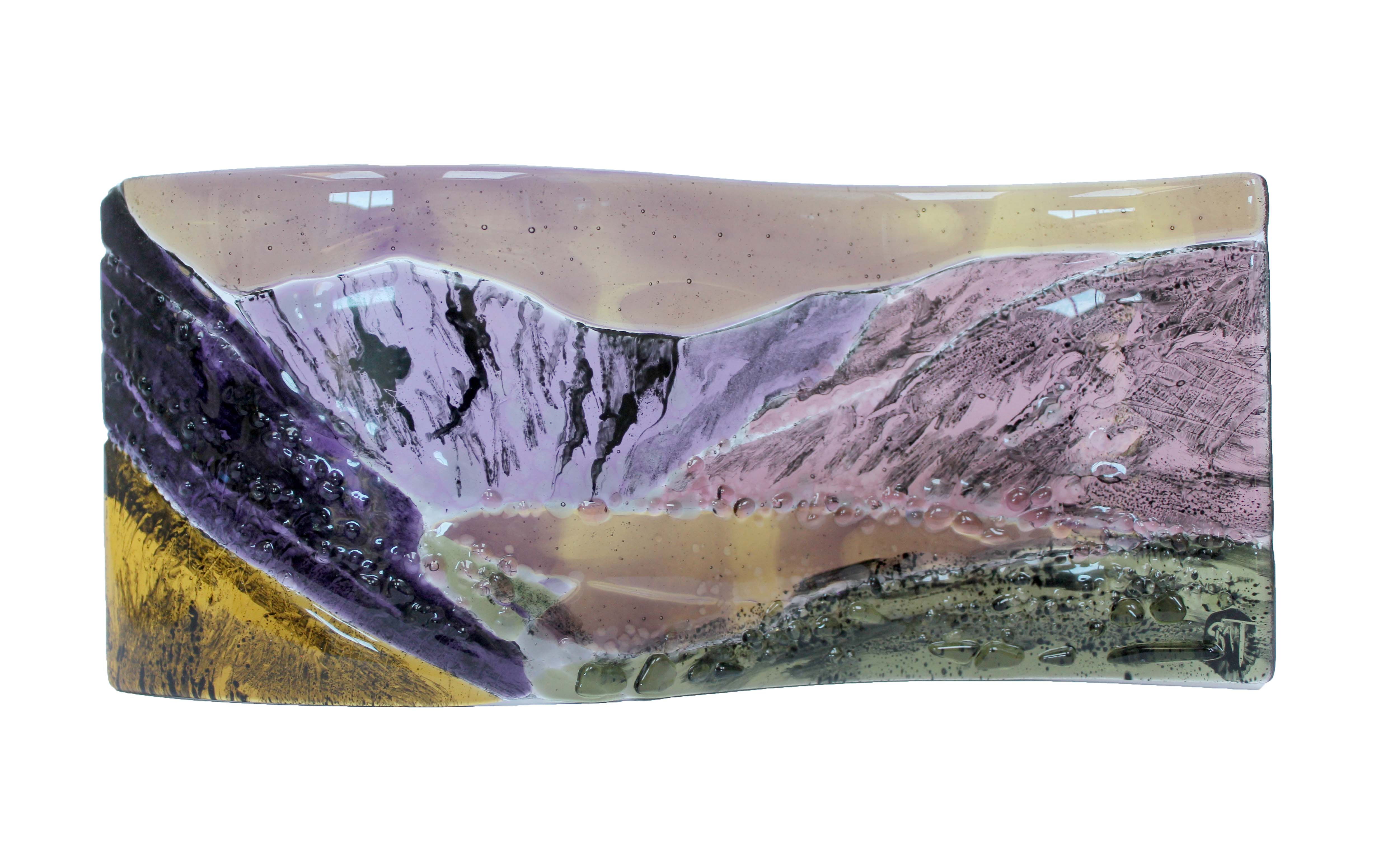 I am a glass artist working from my home studio in the Brecon Beacons. I first discovered the love of glass at Hereford college of Art where I studied for a foundation degree. I followed this up by studying for an MA at Swansea Met. Since then I have taken short courses in glass painting, enamel work and silver stain, also fused glass, to enhance and develop my professional practice. I practice in both Wales and Scotland where I divide my time.