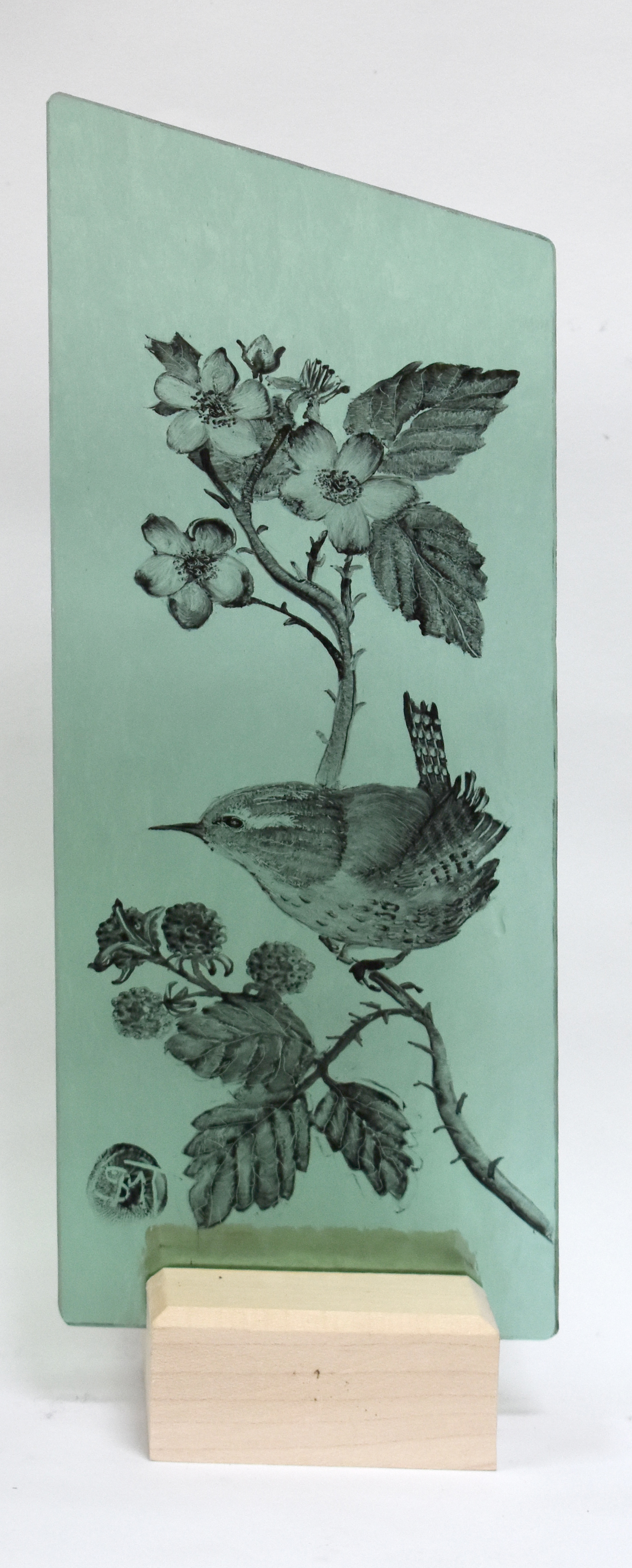 Small painted piece, a wren on brambles , Sue Thorne