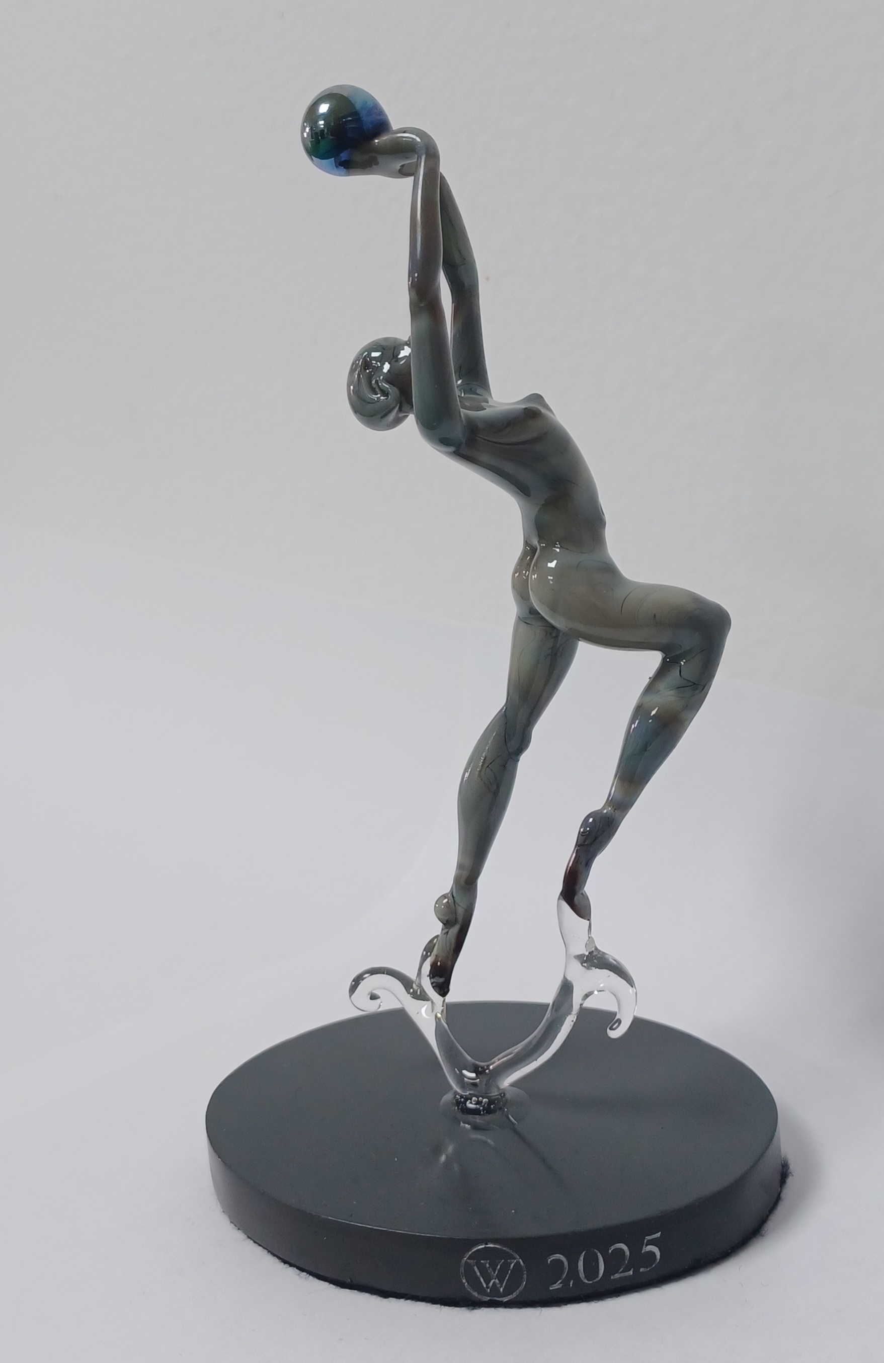 Inspired by a visit to the Alfred Munnings Museum in Dedham Vale in the Summer of 2023 I began experimenting with an enhanced palette of greens, pinks and blues. I created a number of small number brightly coloured flameworked hummingbirds, which led to the idea of the shimmering bowl. Hundreds of small wing like flame worked pieces, were lightly tack fused together before being slumped in the kiln.