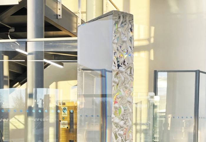 A monumental optical glass, mirror and wood sculpture has gone on display at Glass Futures in St Helens, Merseyside, UK, for the duration of 2024....