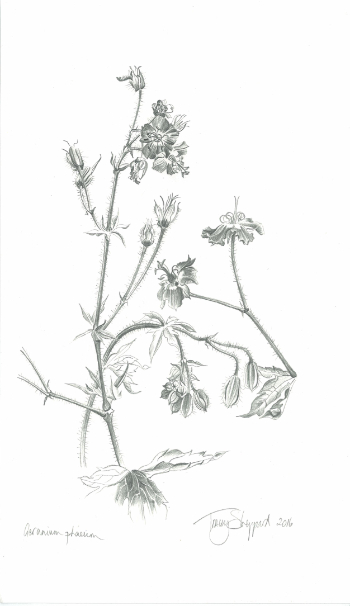 Drawing is a vital aspect of Tracey’s practice. Her attention to detail is in evidence in this study of a Geranium Phaeum.