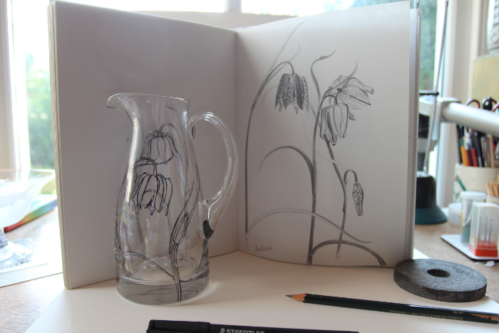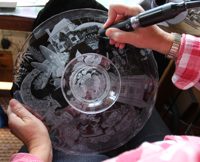 I happened upon glass engraving by accident. I was studying for a combined degree in English Literature and Fine Art. My drawing tutor noticed that I was obsessed by small detail and interested in textures and tone. He suggested that I should go to the local Adult Education Centre and join a class where I would learn how to engrave glass. I knew nothing about the medium, but within two weeks I was hooked. The tutor, who became my dear friend and mentor, Josephine Harris was inspirational and unfailingly generous, passing on the skills and insights that she in turn had learned from Peter Dreiser at Morley College. Those classes, in a draughty, breezeblock building in Isleworth, were the beginning of a career which, to date, has lasted 43 years.