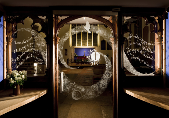 Tracey has a completed large-scale commissions for religious buildings, including this entrance screen for St Lawrence’s Church, Winchester. Photo: Nick Carter.