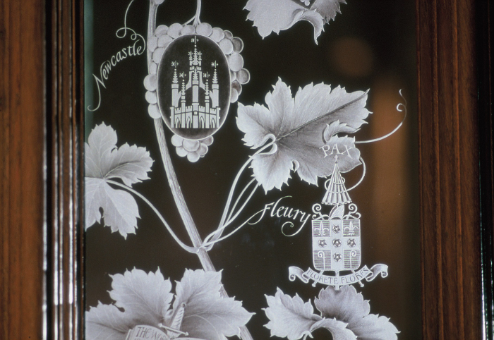 She was commissioned to engrave carafes, a jug and tumblers as part of a suite of glasses presented by The Glass Engraving Trust to Number 10 Downing Street.