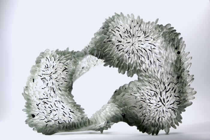 I started with glass blowing, which I did for the first 10 years of my glass journey. Then I was shown all the kiln techniques at art school, like hanging glass in the kiln, fusing, slumping, pate de verre, sand casting, kiln casting, hot mould blowing and mixing things up, like using blown pieces in the kiln or using kiln casting in the blowing studio, which was my way into working like I do now.