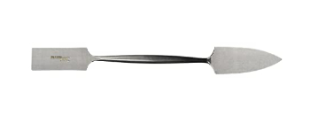 I couldn’t live without my cordless power drill, or my encaustic soldering iron (which doesn’t overheat the wax), but my favourite tool is a nameless, stainless steel, concrete working tool. One end has a flat pointed triangle, the other end has a flat rectangle. Amazon calls it a Bon Tool Trowel and Square, a 1-inch Italian Ornamental Trowel. I use it mainly for wax working.