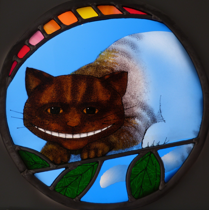 Not having had any formal training, it started as trial and error. But over the years I have observed other people, and on occasion worked with others, and learned lots. When I make a new piece, or get a commission, it starts with ideas in a sketch book. From there I will make a colour sketch in watercolour and then draw the cut line. That will have lots of detail, so that I can trace from the cut line straight onto the glass. The tracing gets fired and then any shading, sand blasting or silver staining follows the tracing.