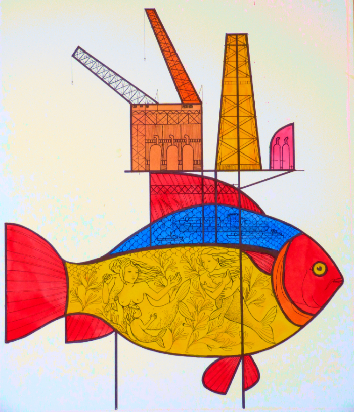 A dip-pen. Virtually everything I do starts with a pen drawing. I even use one for tracing on to glass. Mixing the paint with clove oil allows it to flow from a pen. I don’t know quite why, but I am just comfortable with it. I was given a glass pen holder in Venice once, and I still like using it.