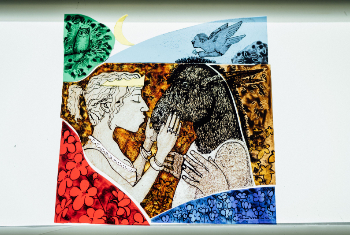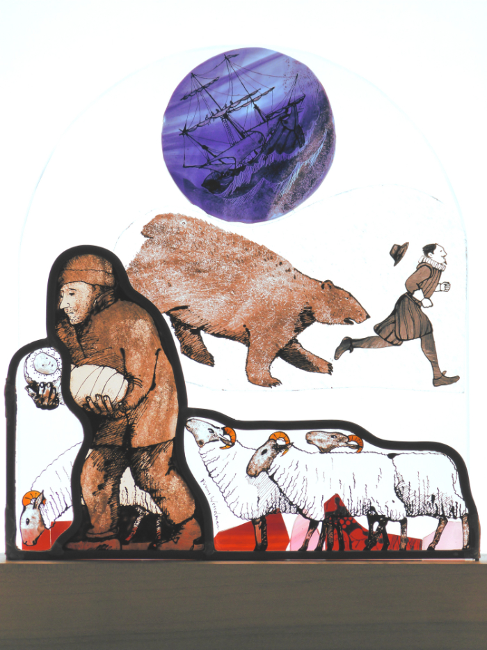 I am a strictly two-dimensional person and, having come from painting to glass, I have only ever worked with stained glass. However, on occasion, I bond pieces and/or mount several in front of one another on a plinth, which is as close as I get to a third dimension.