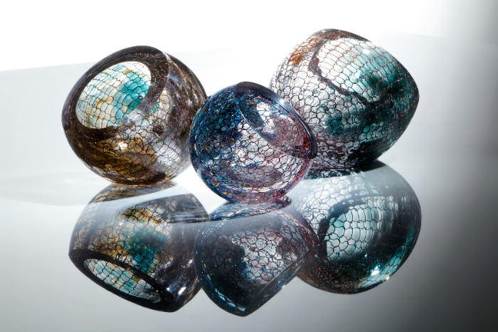 Artists and craftspeople have been tuning in to watch the BBC tv series ‘Make It at Market’, where hobby makers are mentored to help them move their passion into a business. Allister Malcolm, who is based at the Stourbridge Glass Museum, was the mentor for the four budding glass artists on the show. Here we hear from one of his protegees, Emmy Palmer, whose ‘Pip’ blown glass dishes and knitted wire and glass pieces impressed Allister and presenter Dom Chinea, of ‘The Repair Shop’ fame.
