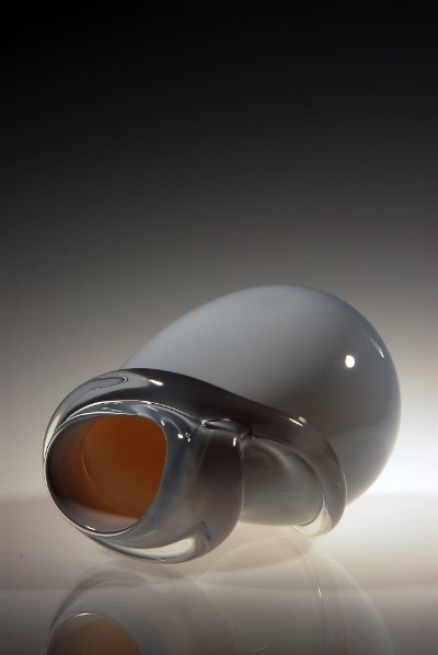 During a visit to a glass factory in Sandomierz, Poland, where I was working as an architect, I watched glass plates coming off the conveyor belt and noticed glass blowers in an adjacent workshop making Bohemian glass products. I saw the pleasure they had in working as a team. Inspired, I took a course and began experimenting with glass objects. Later, I met Neil Wilkin and collaborated with him for several years.
