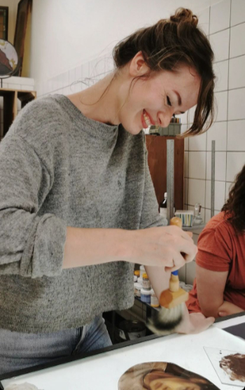 At 15, after earning my high school diploma, here in the Netherlands, I had to choose a college path. I ended up in a restorative and decorative painting programme, which seemed to make the most sense to me at the time. During this period, I stumbled upon stained glass, as my programme had a semester dedicated to it. I had always admired the beautifully painted church windows, but it hadn’t occurred to me that it could be a career until then. Something clicked for me after those classes.