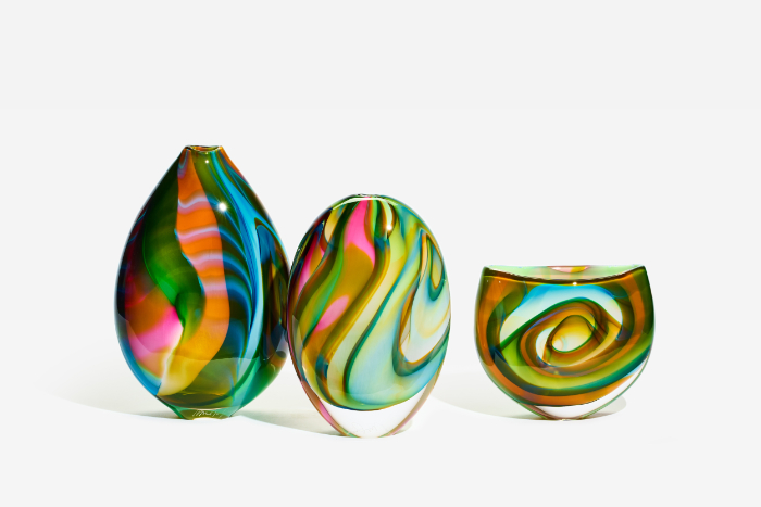 Tim Rawlinson brings a fresh and innovative approach, challenges conventional boundaries and offers a refreshing perspective that resonates with the ever-evolving landscape of glass art. His vibrant colourways and illusive compositions are a testament to the exceptional creativity that London Glassblowing continues to foster.